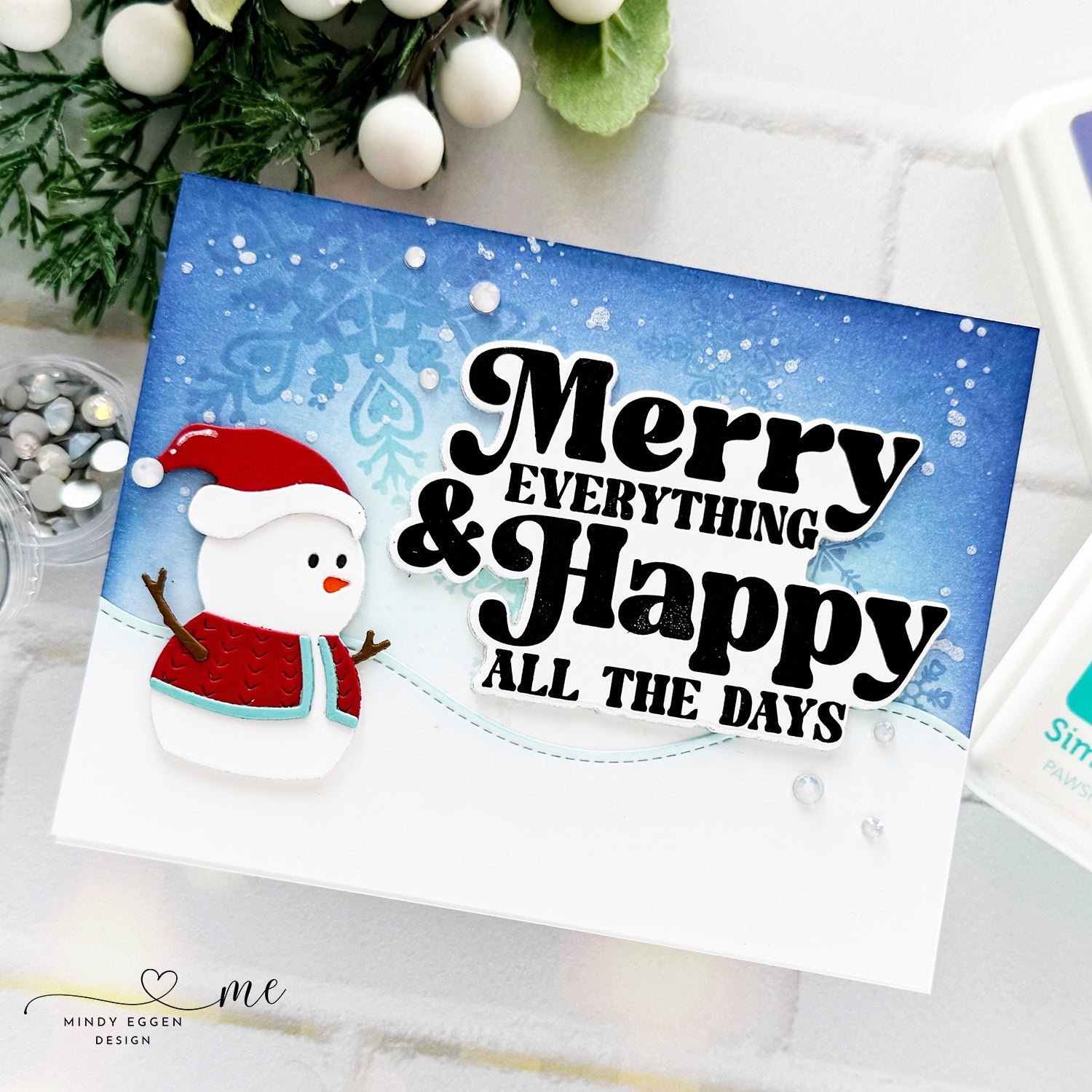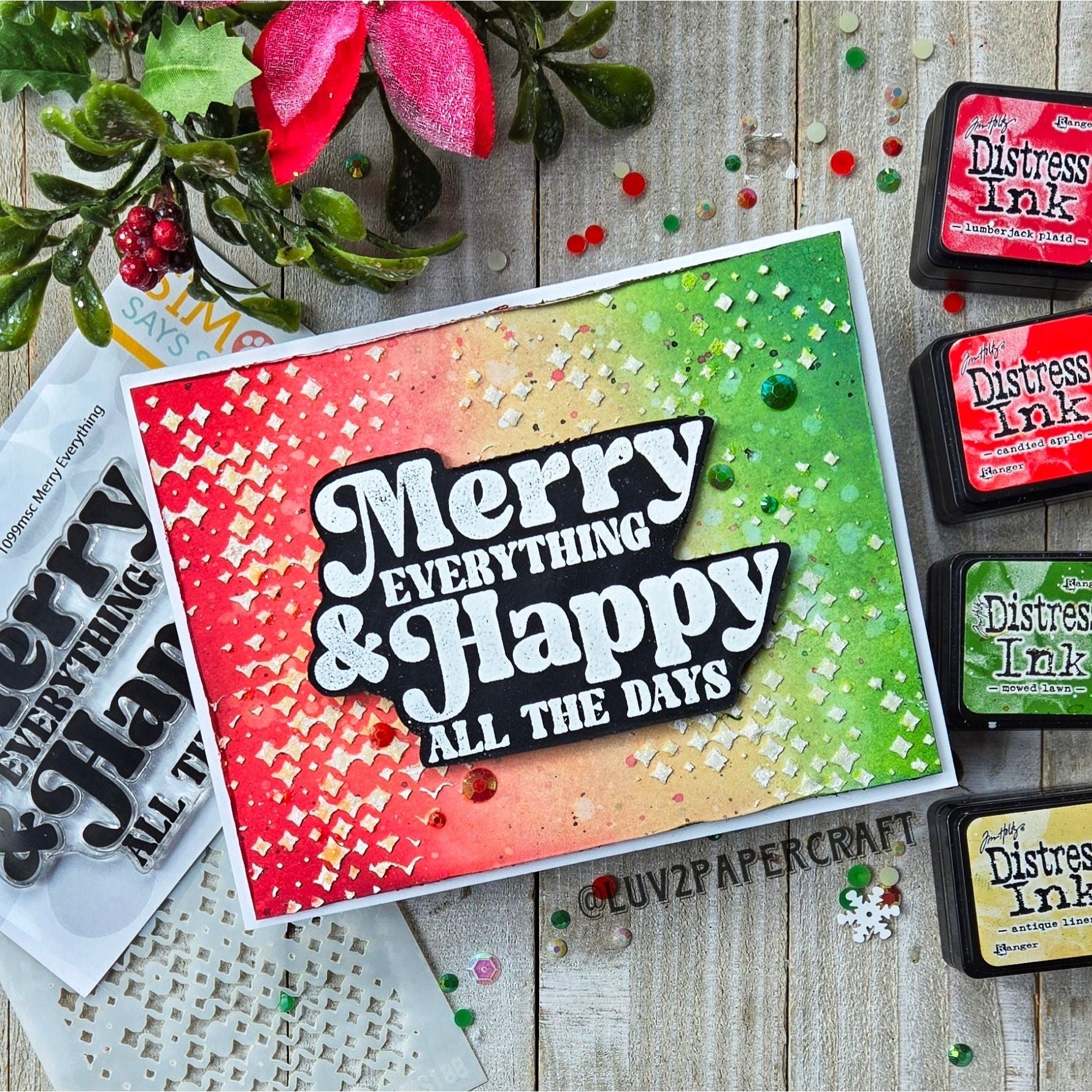 The Simon Says Stamp Merry Everything stamp and die adds a festive touch to your holiday projects with its cheerful sentiment, "Merry Everything & Happy All the Days."