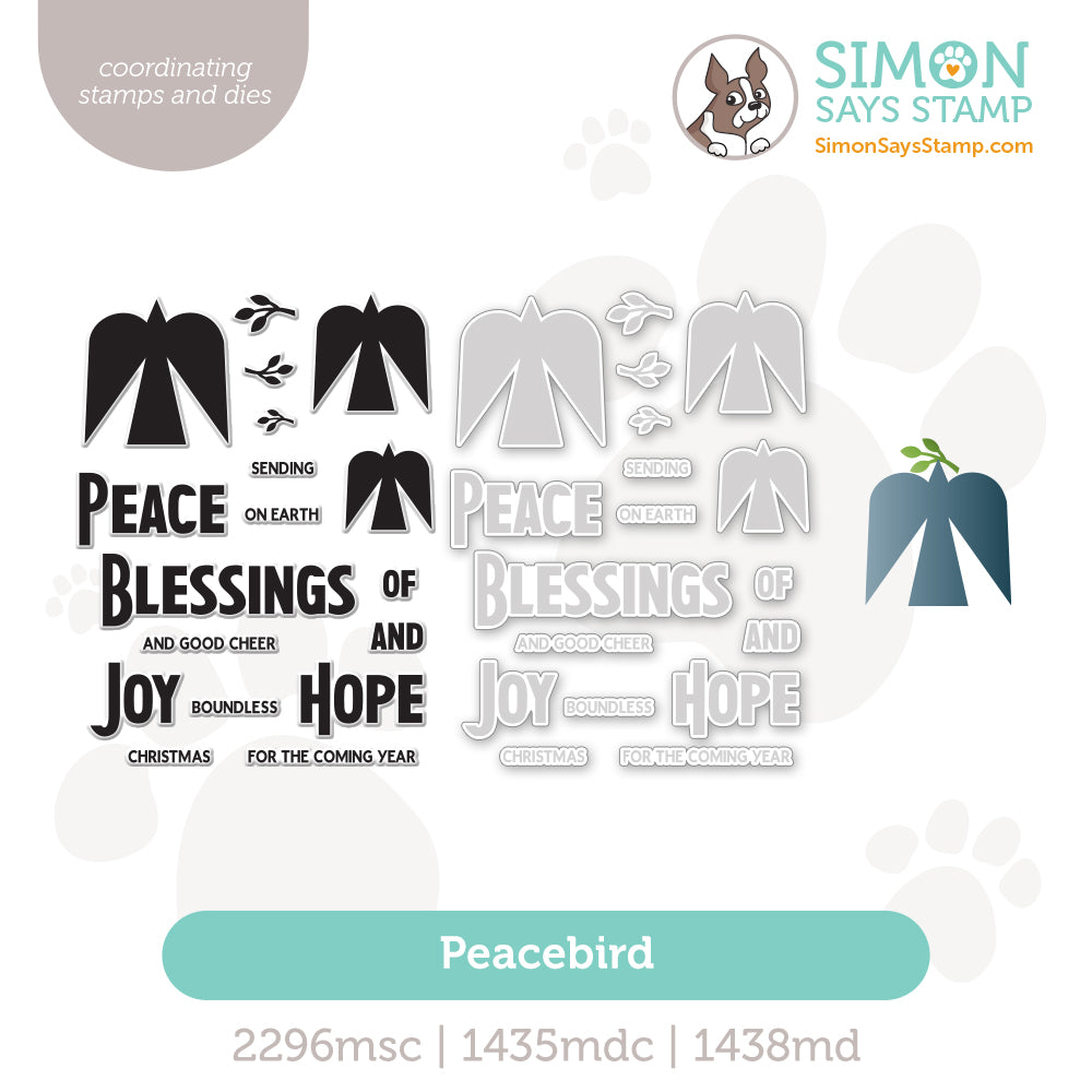 The Simon Says Stamp Peacebird bundle combines simplicity and symbolism for beautifully modern holiday designs. This elegant collection features solid stamps (and coordinating dies) of clean, graphic doves in various sizes, along with delicate branches they can hold in their beaks to create striking, customizable compositions. There is also an additional die for a bird with a branch.