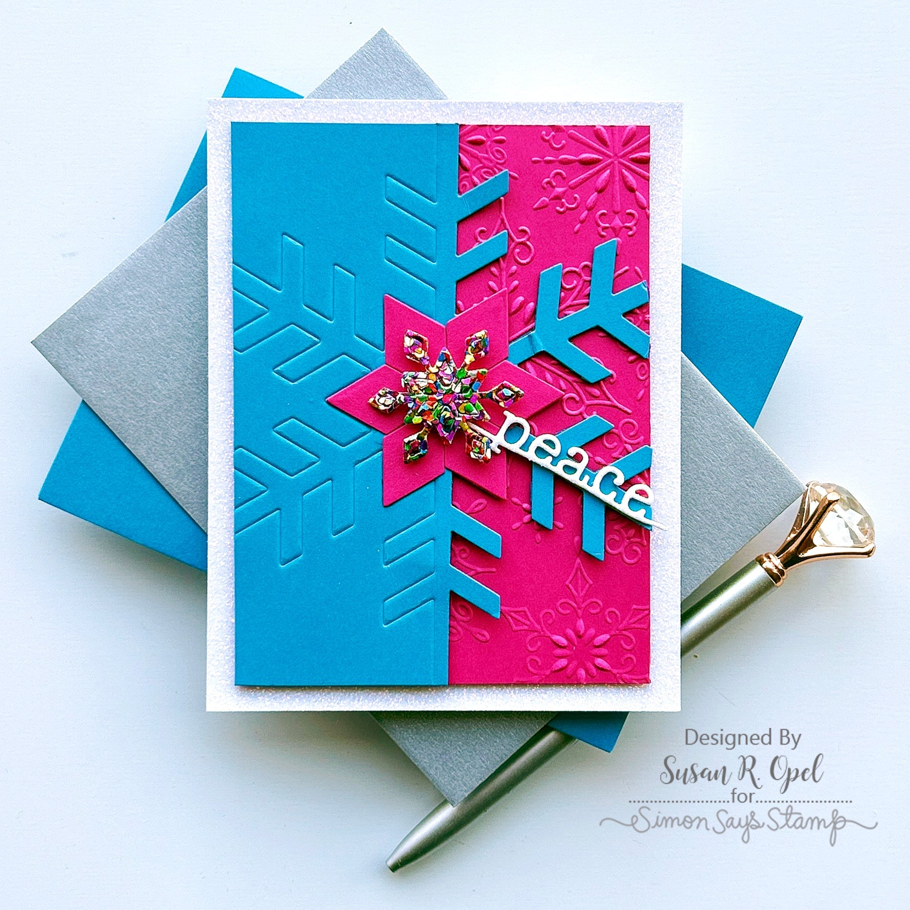 Elevate your winter and holiday crafting with the Simon Says Stamp Fanciful Flurries embossing folder. This exquisite embossing folder effortlessly creates a background adorned with delicately detailed snowflakes in various sizes.