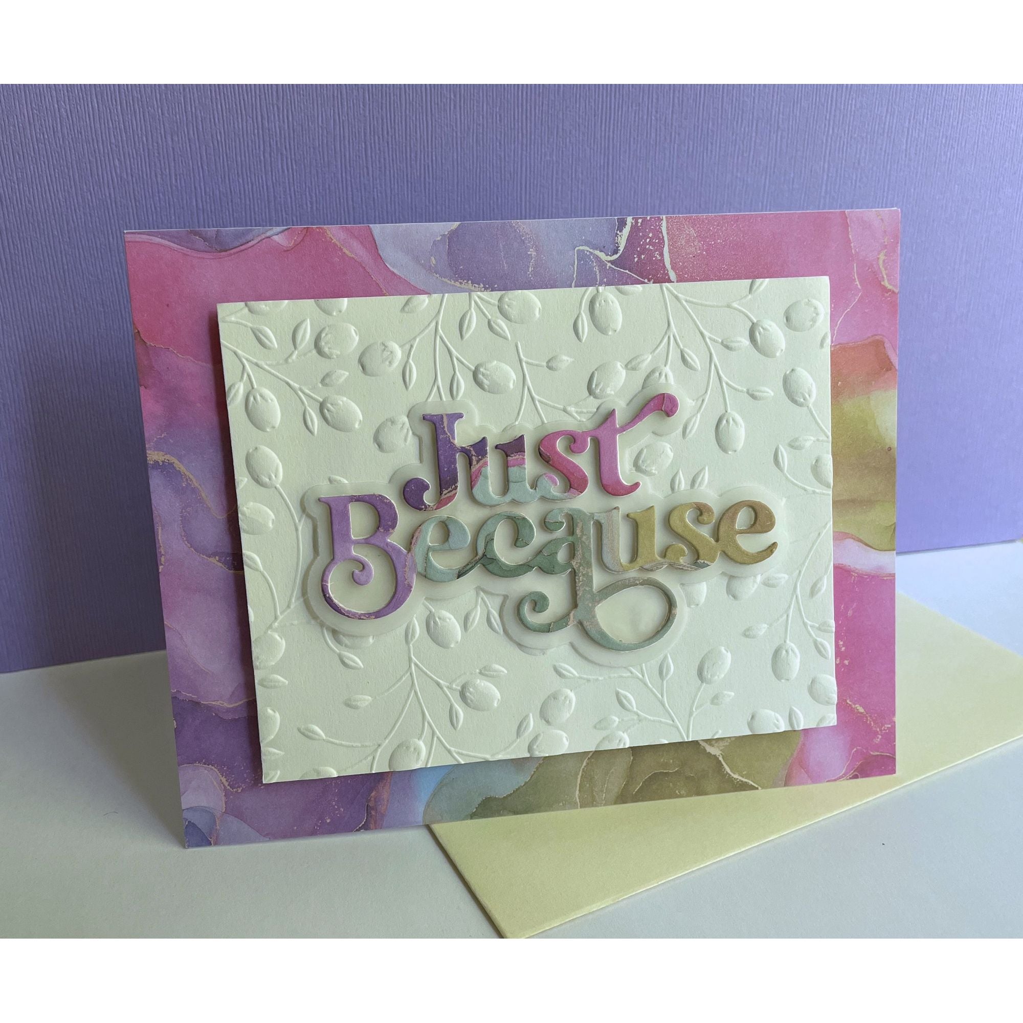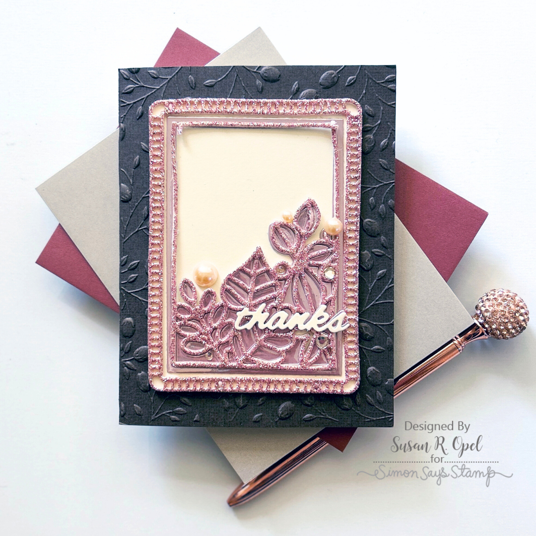 The Simon Says Stamp Tiny Tufts embossing folder creates a delicate background of vined greenery with charming tufted ends.