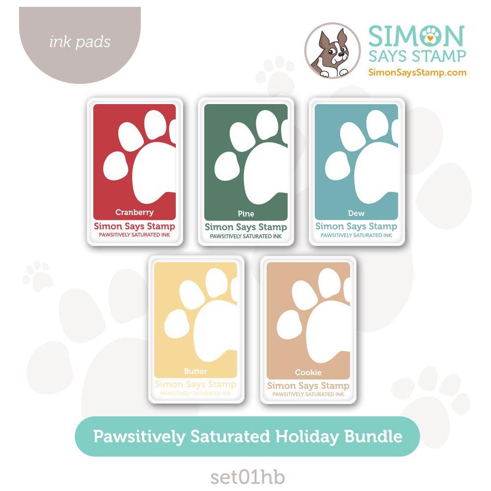 Introducing the Simon Says Stamp Pawsitively Saturated Holiday Ink Bundle! This set includes five full-sized saturated dye ink pads in holiday hues. The colors in this bundle are: