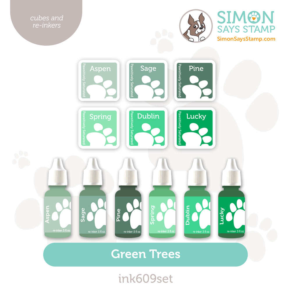 Simon Says Stamp Pawsitively Saturated Ink Cubes Green Trees and Re-Inkers ink609set