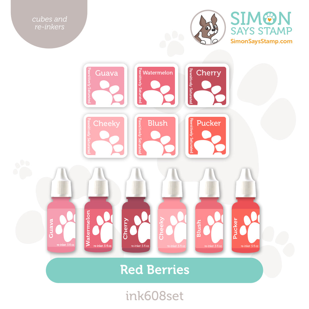 Our popular Simon Says Stamp Pawsitively Saturated Ink is now available in cube form! The versatile Red Berries 6-pack and re-inkers can be used for a wide variety of techniques and projects.