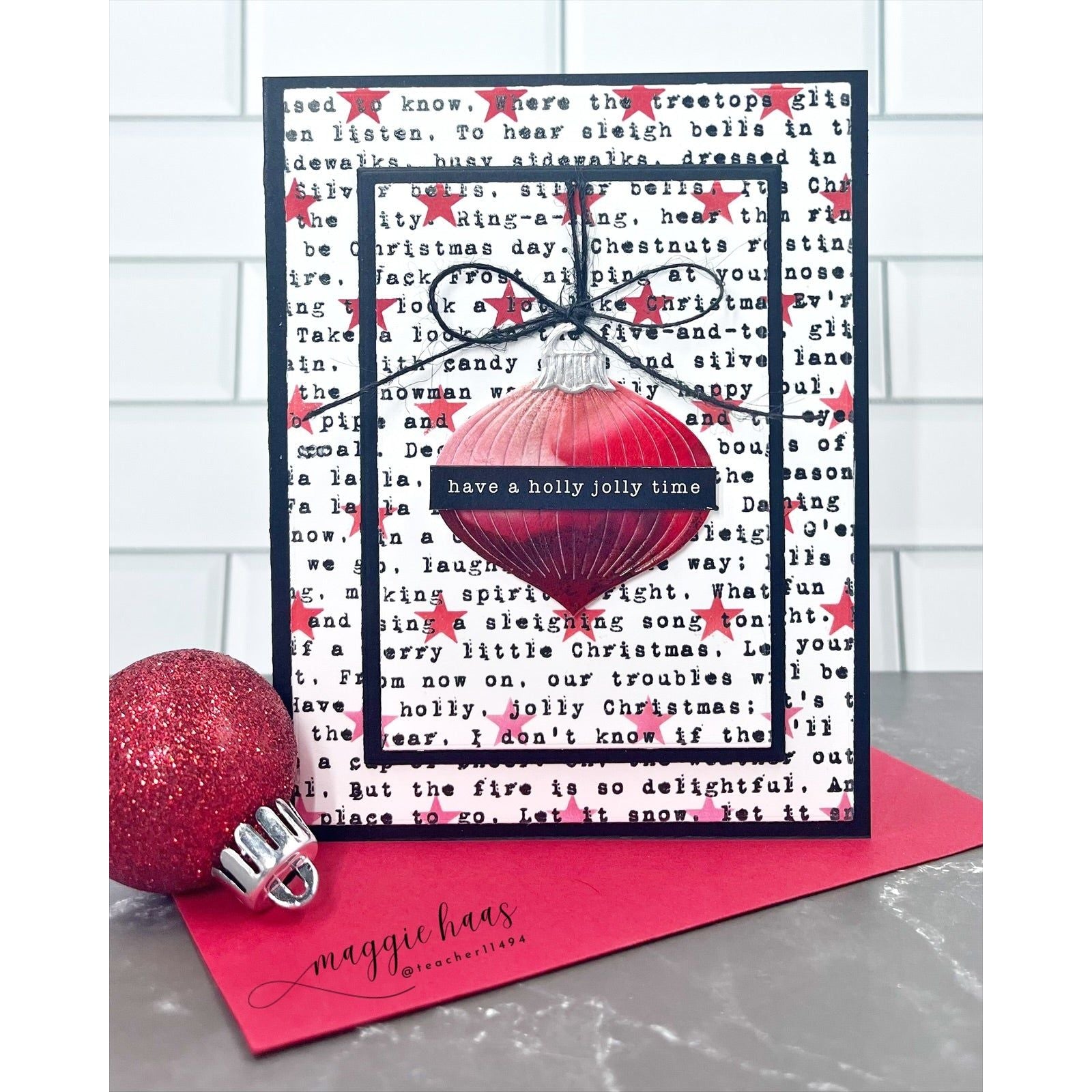 Bring nostalgic charm to your holiday projects with the Simon Says Stamp White Christmas Text stamp. This background stamp features the beloved lyrics of many favorite holiday tunes, including “White Christmas,” "Silver Bells," "The Christmas Song," "It's Beginning to Look a Lot Like Christmas," "Frosty the Snowman,"Jingle Bells," "Have Yourself a Merry Little Christmas," and "Holly, Jolly Christmas" repeated in a small, vintage typewriter-style font.