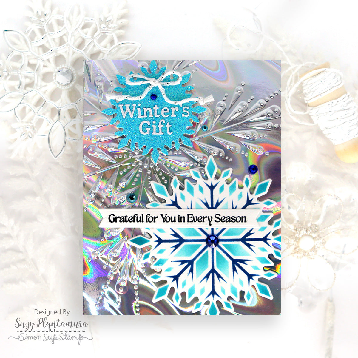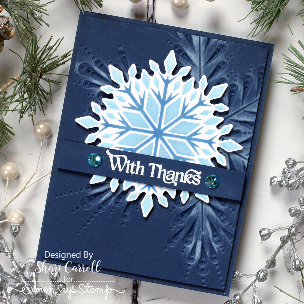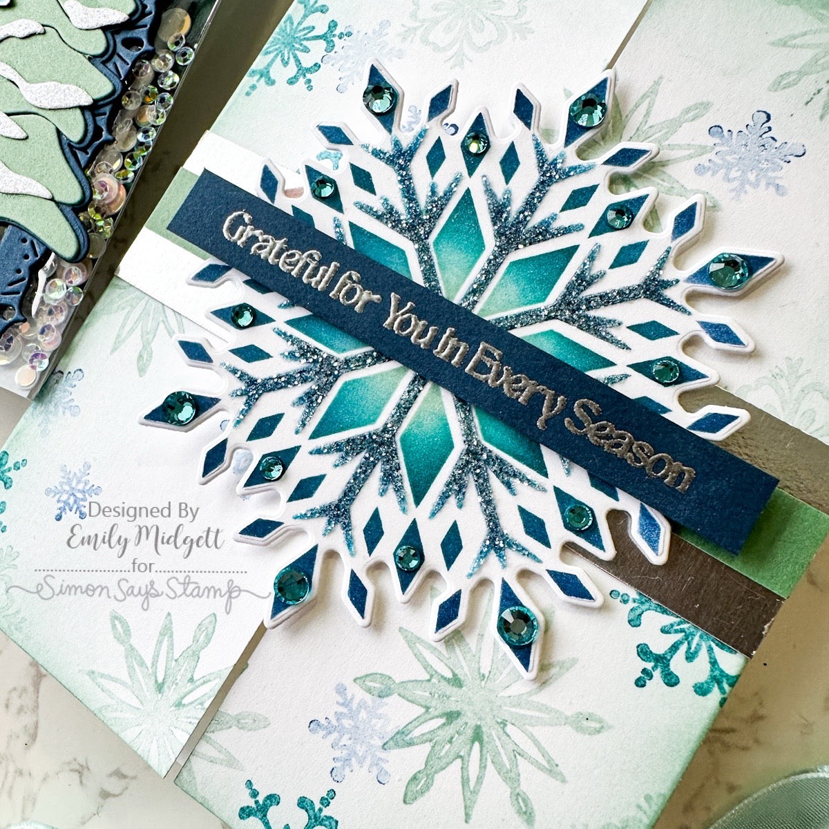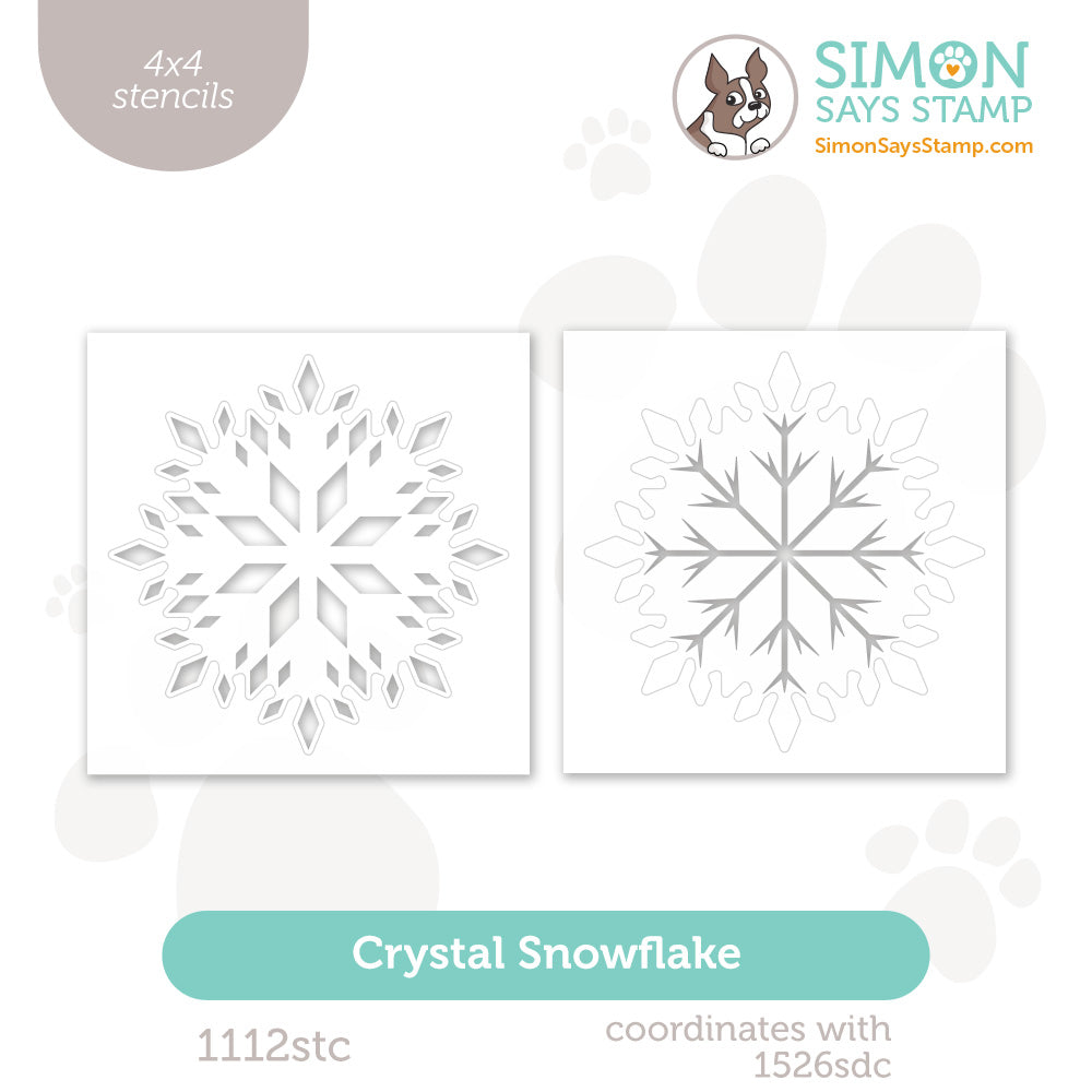 Simon Says Stamp Crystal Snowflake stencil set makes it easy to create a striking snowflake focal point with beautiful depth and detail. This layering stencil set is designed to work in two passes, allowing you to blend inks or apply two different colors or textures of paste for a dimensional, crystal-like effect.