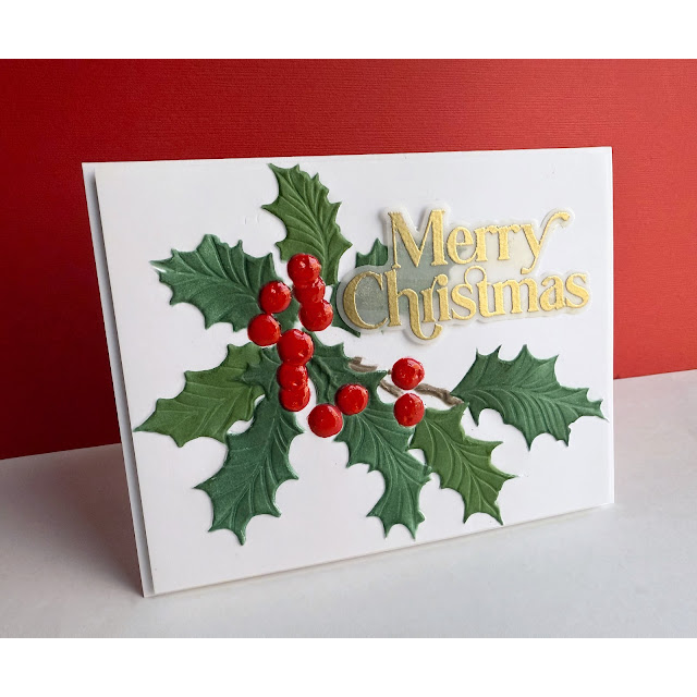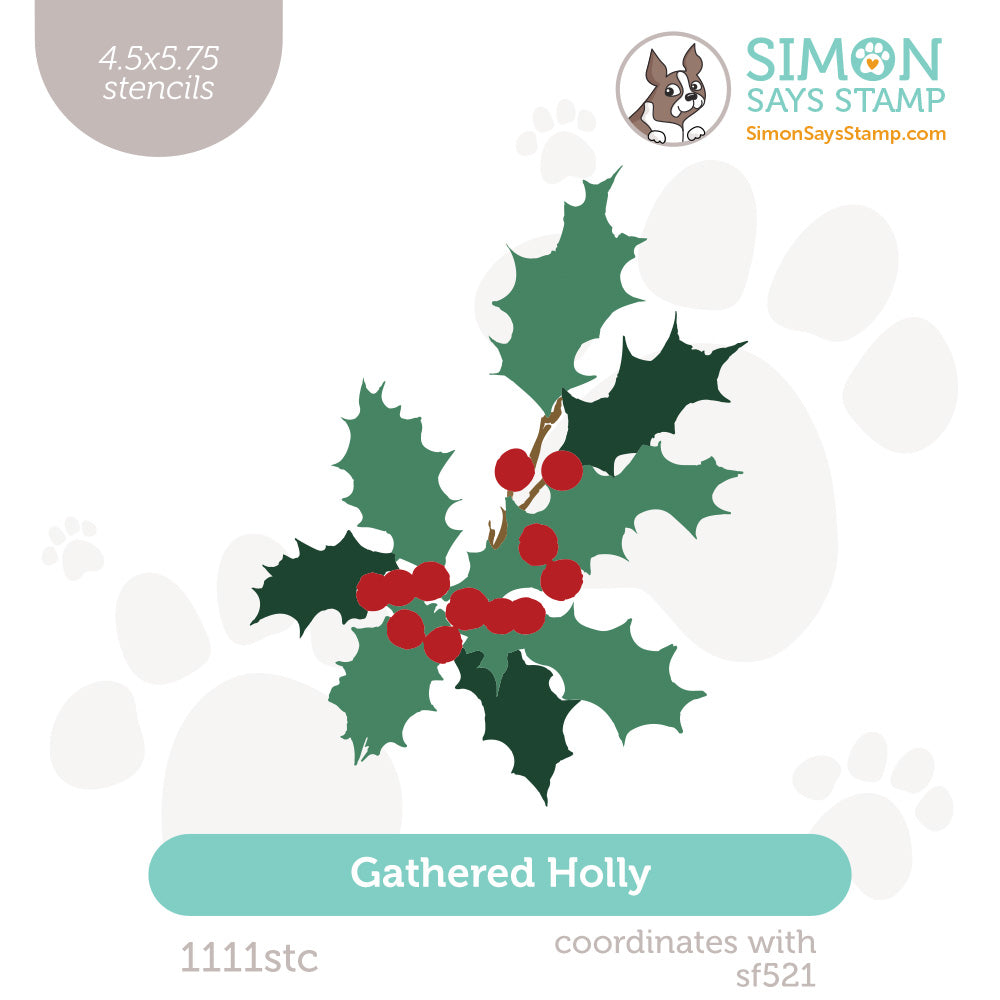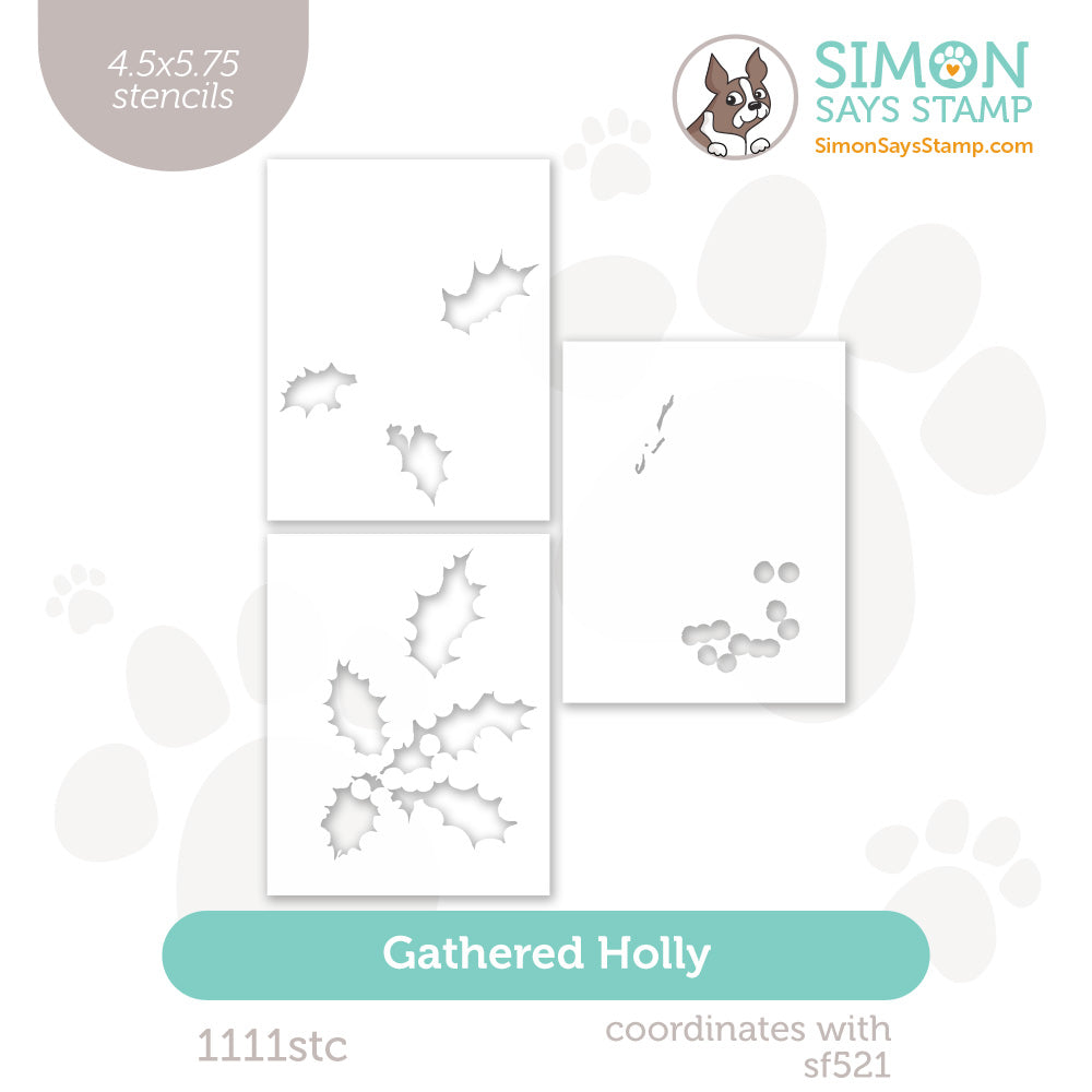 The Gathered Holly stencils are designed to layer perfectly over the embossed image created with the Gathered Holly embossing folder.