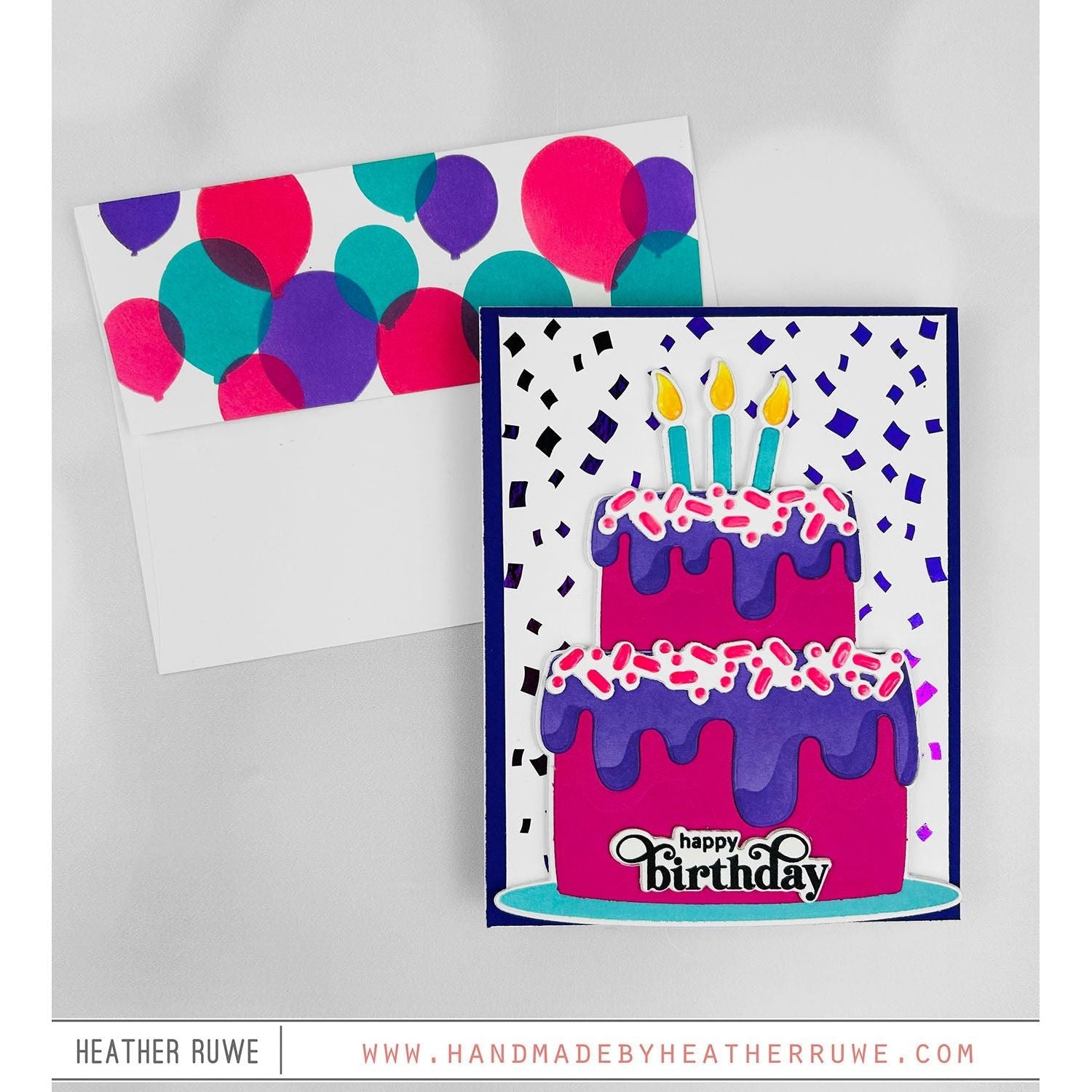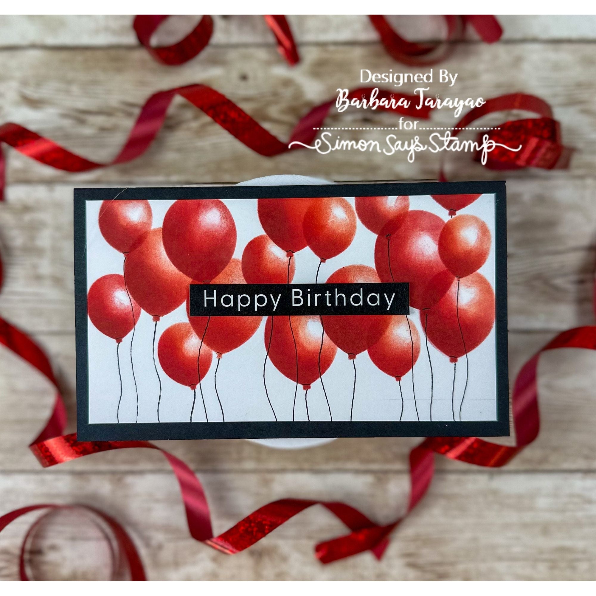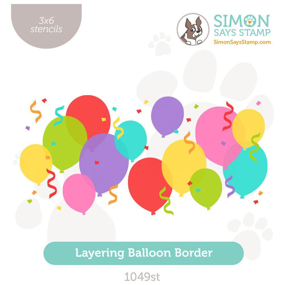 The Simon Says Stamp Layering Balloon Border stencils create a festive line of balloons adorned with confetti and streamers.