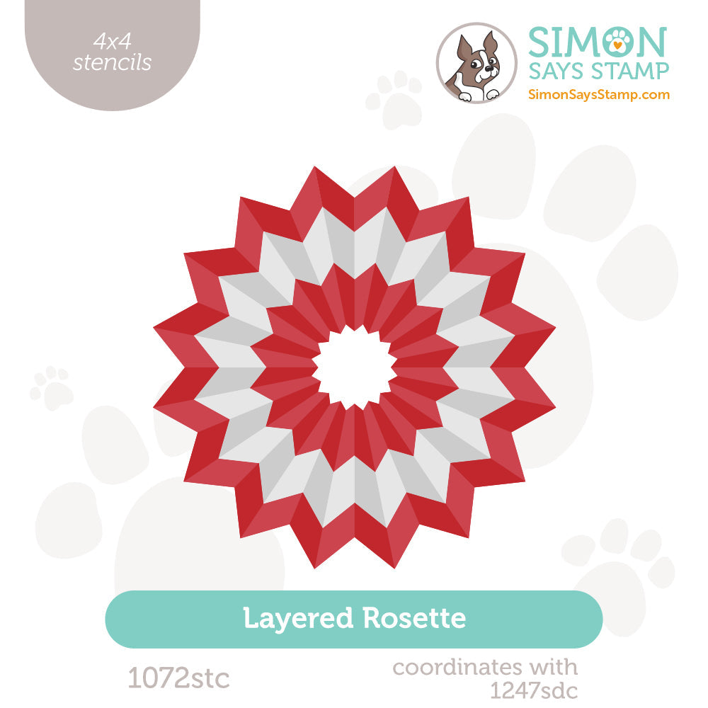 The Simon Says Stamp Layered Rosette stencils set brings a striking 3D effect to your projects with ease. This set includes 4 layering stencils, each designed to work together to create the look of a beautifully pleated rosette decoration.