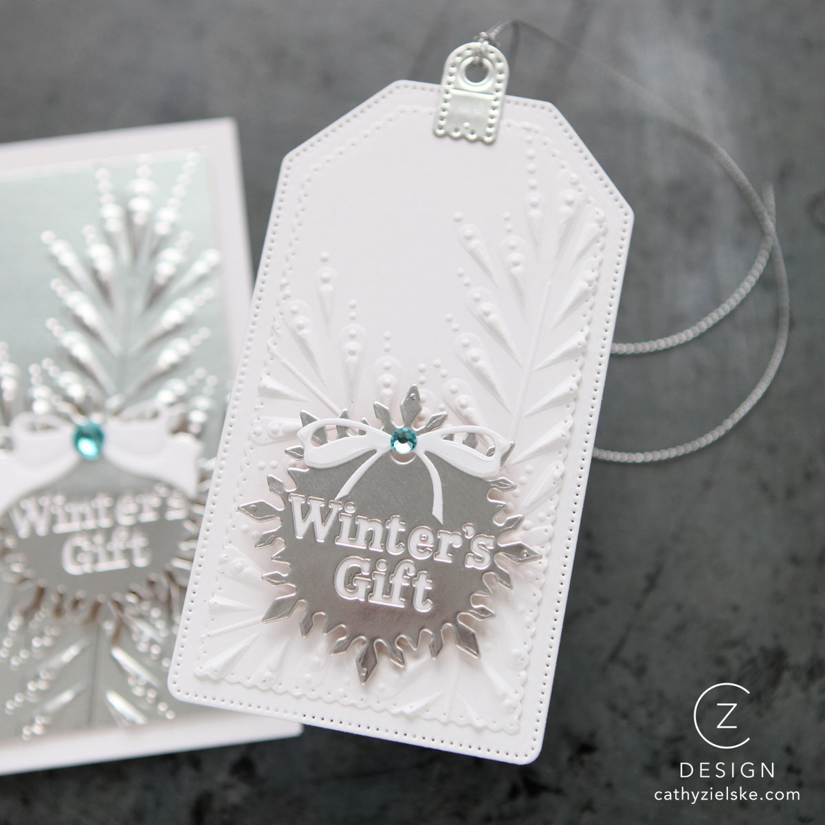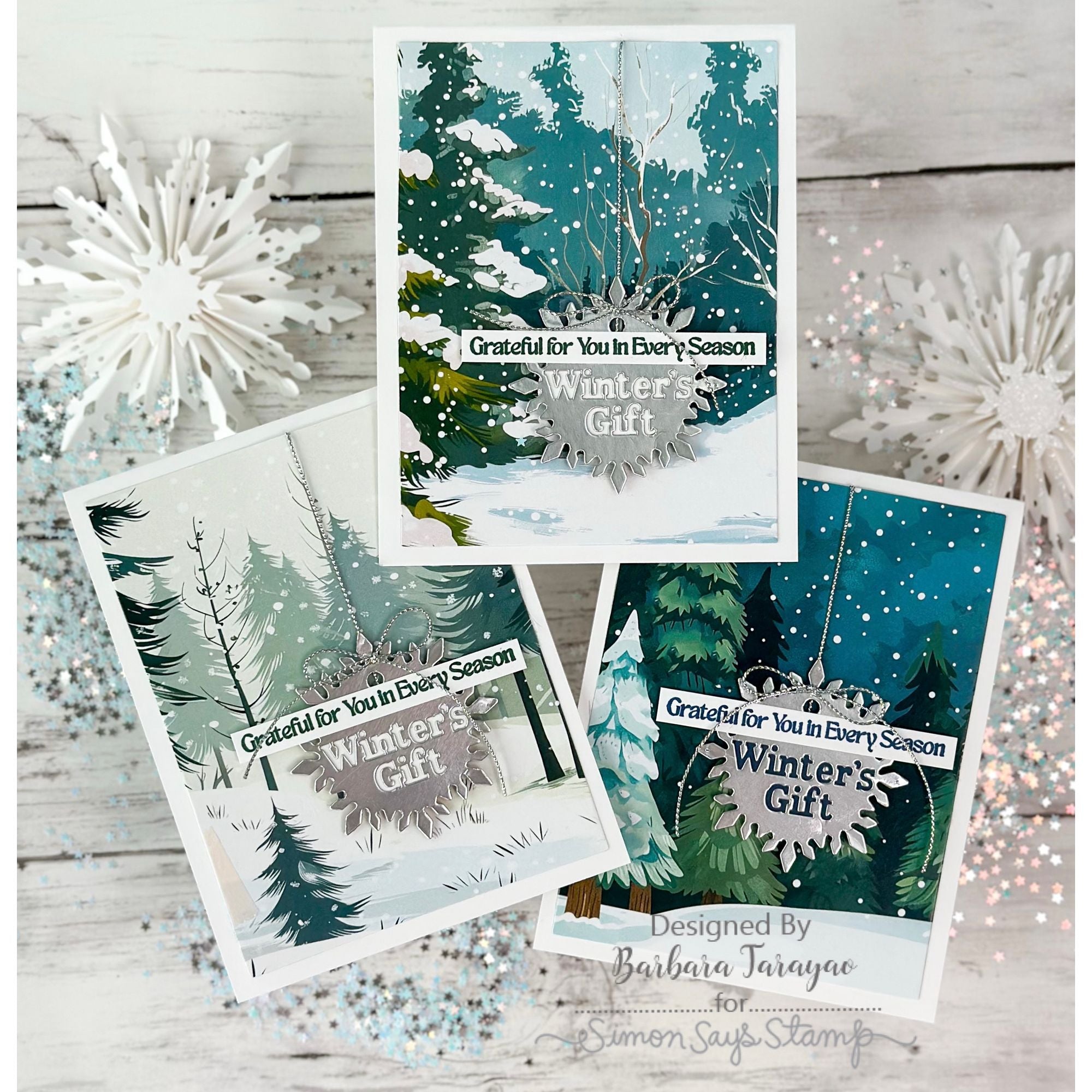 The larger die cuts an outline around the completed stenciled snowflake, making it easy to turn your finished focal point into a polished die-cut element. The smaller die creates a scaled-down, solid snowflake with the sentiment "Winter’s Gift" cut directly from the center, giving you a ready-to-use accent that doubles as a greeting. Use these dies to add depth, sentiment, and flexibility to holiday cards, winter projects, and elegant seasonal crafts.