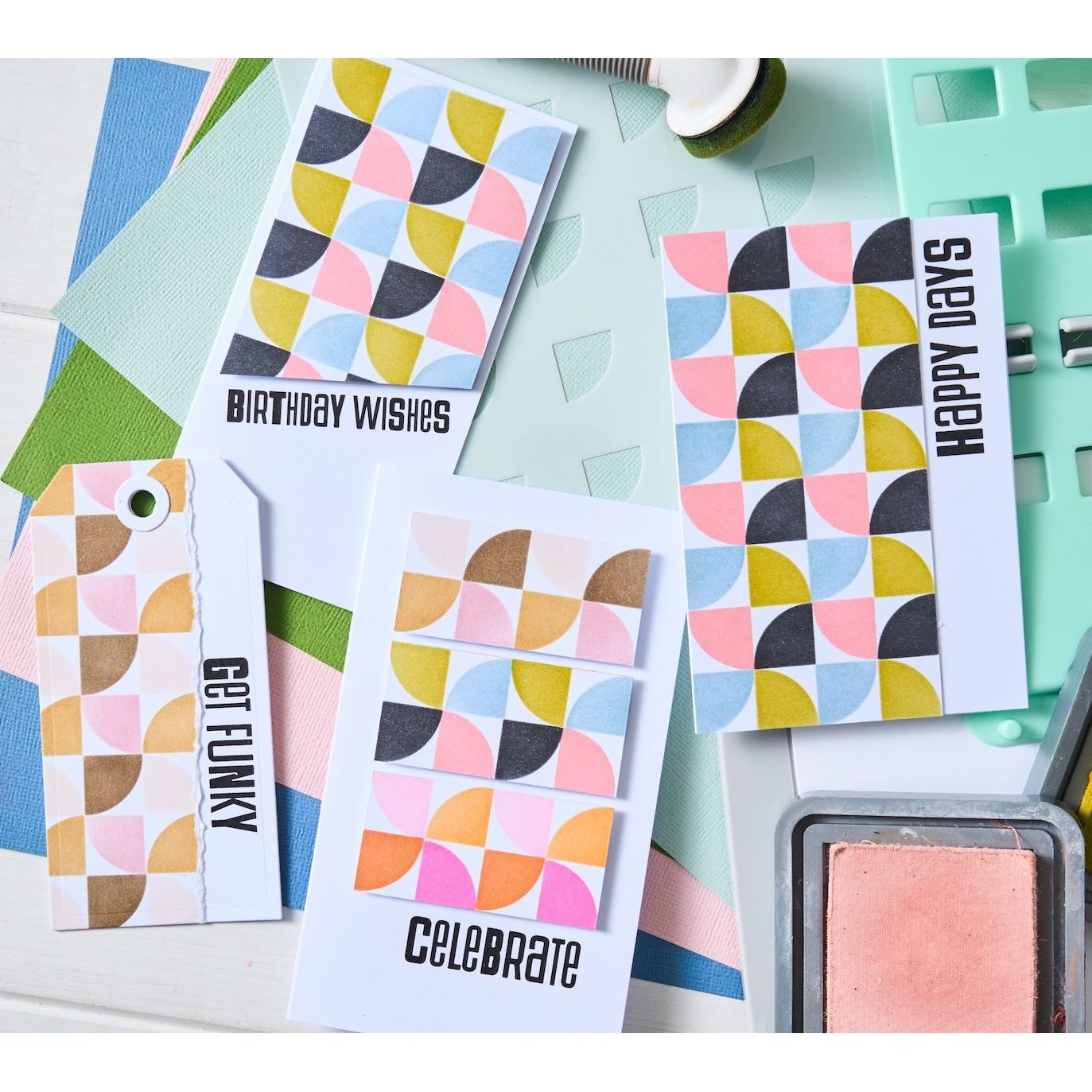 Sizzix Candy Kitsch Rotating Stencil adds a touch of retro charm and vibrant fun to your projects. This playful 4.875 x 4.875-inch stencil features bold, whimsical shapes inspired by nostalgic candy colors and kitschy patterns. The rotating design makes it easy to layer and repeat the pattern in multiple orientations and colors for endless creative possibilities. Designed for use with the Sizzix Making Tool Stencil & Stamp Tool (664896), sold separately.
