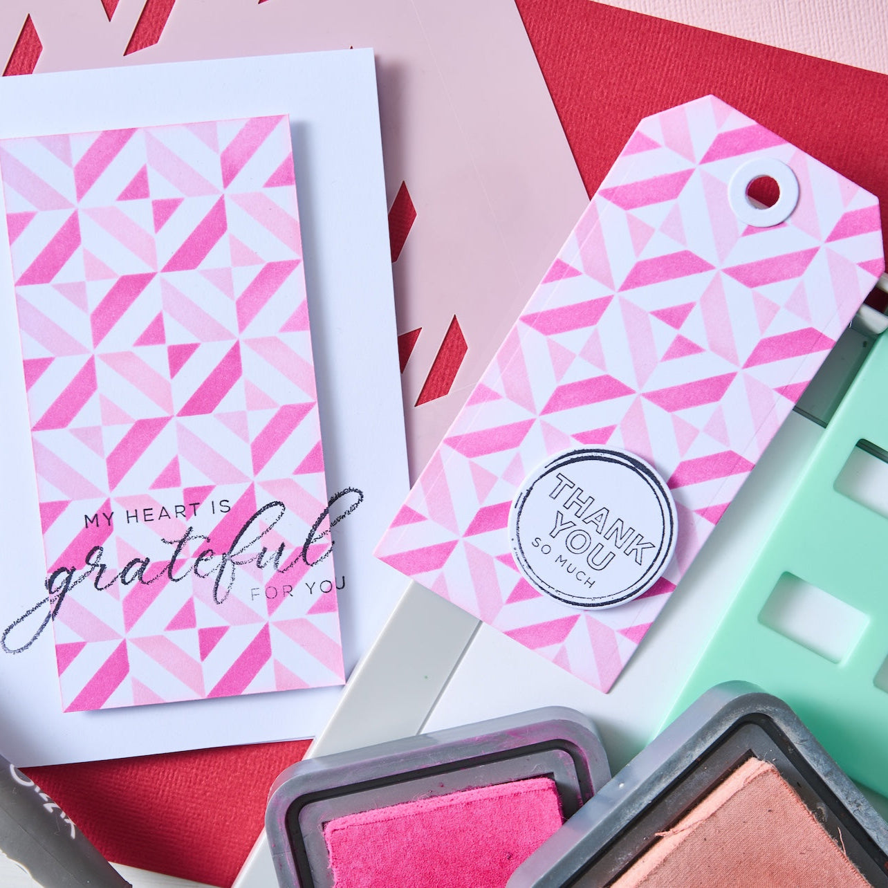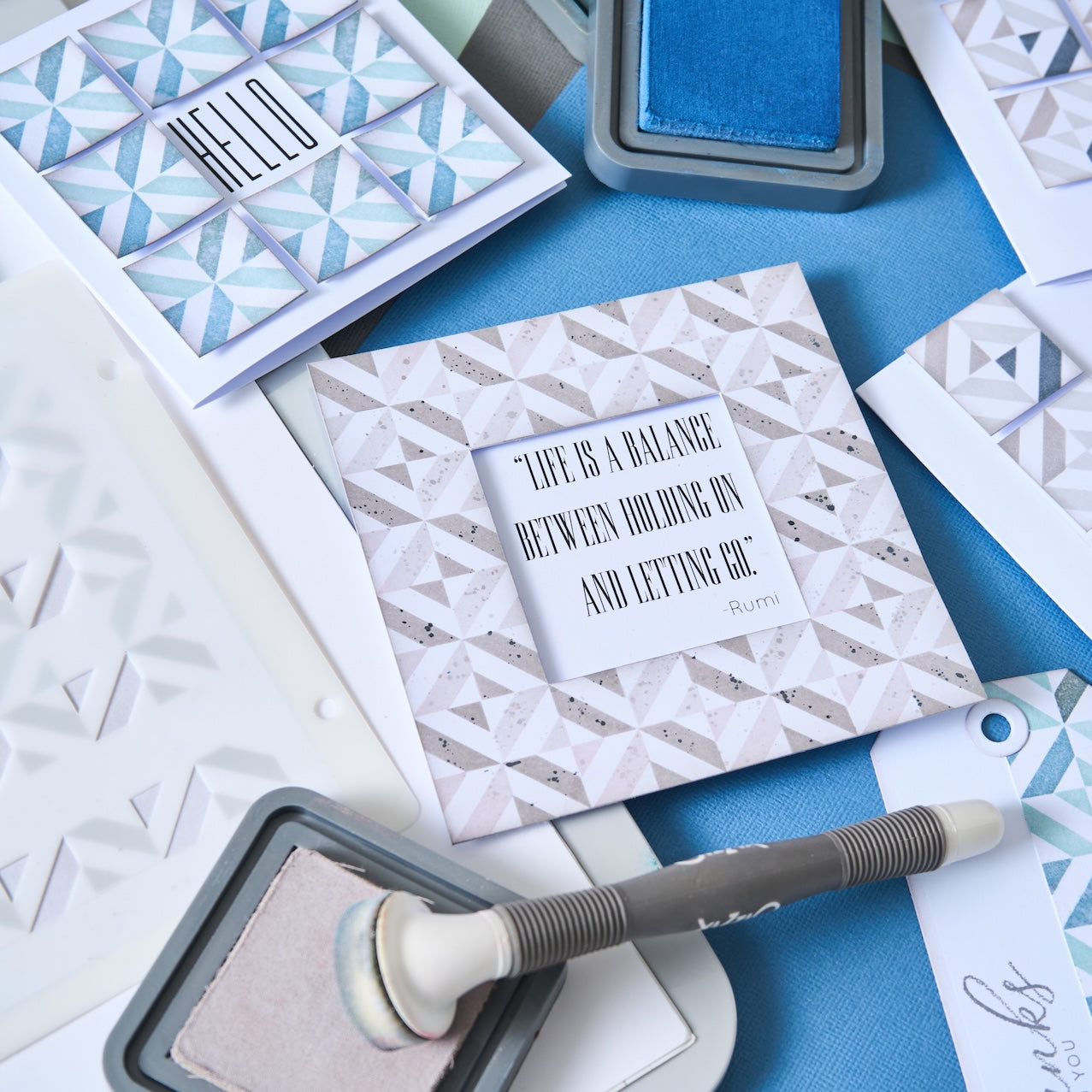 Sizzix Geo Blocks Rotating Stencil features a bold geometric block pattern made up of squares with varying diagonal lines, perfect for adding a modern edge to your designs. The rotating feature lets you easily layer and repeat the pattern in different directions and colors for unique, multidimensional effects. Stencil measures approximately 4.875 x 4.875 inches and is designed for use with the Sizzix Making Tool Stencil & Stamp Tool (664896), sold separately.
