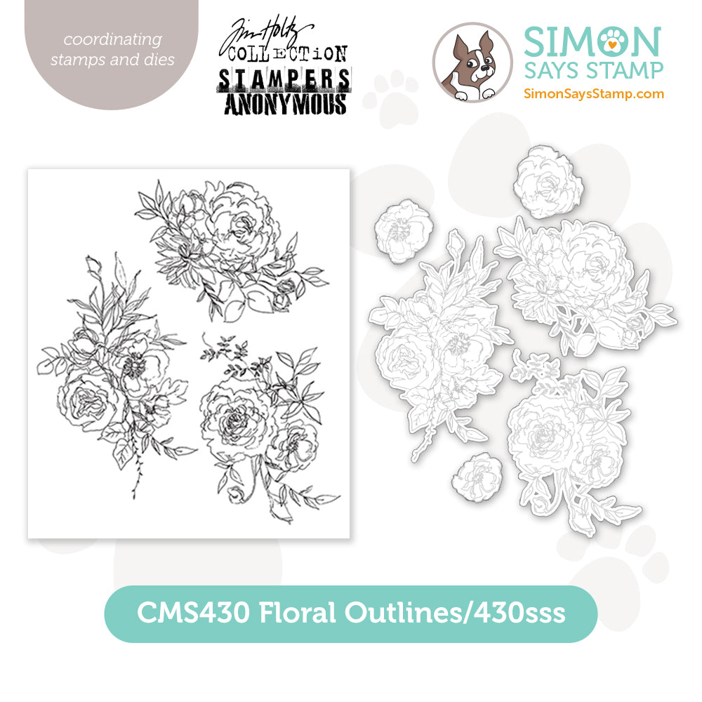 This bundle includes the Tim Holtz Floral Outlines Cling Rubber Stamps and the Simon Says Stamp Floral Outlines coordinating dies.