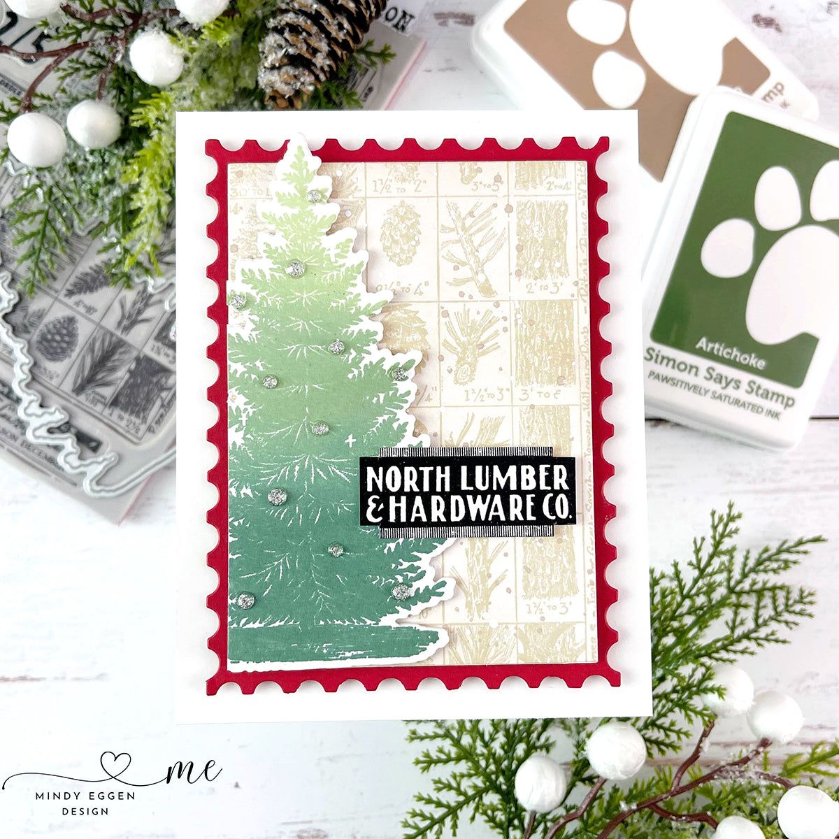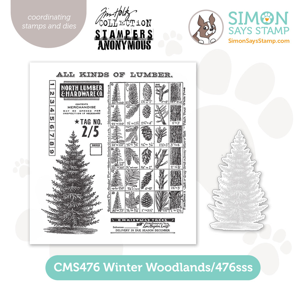 This bundle includes the Tim Holtz Winter Woodlands Cling Rubber Stamps and the Simon Says Stamp Winter Woodlands coordinating dies.