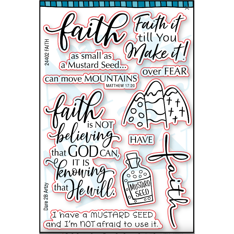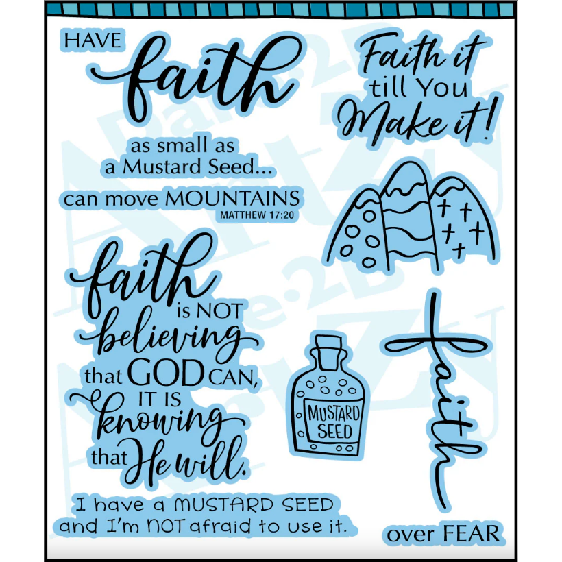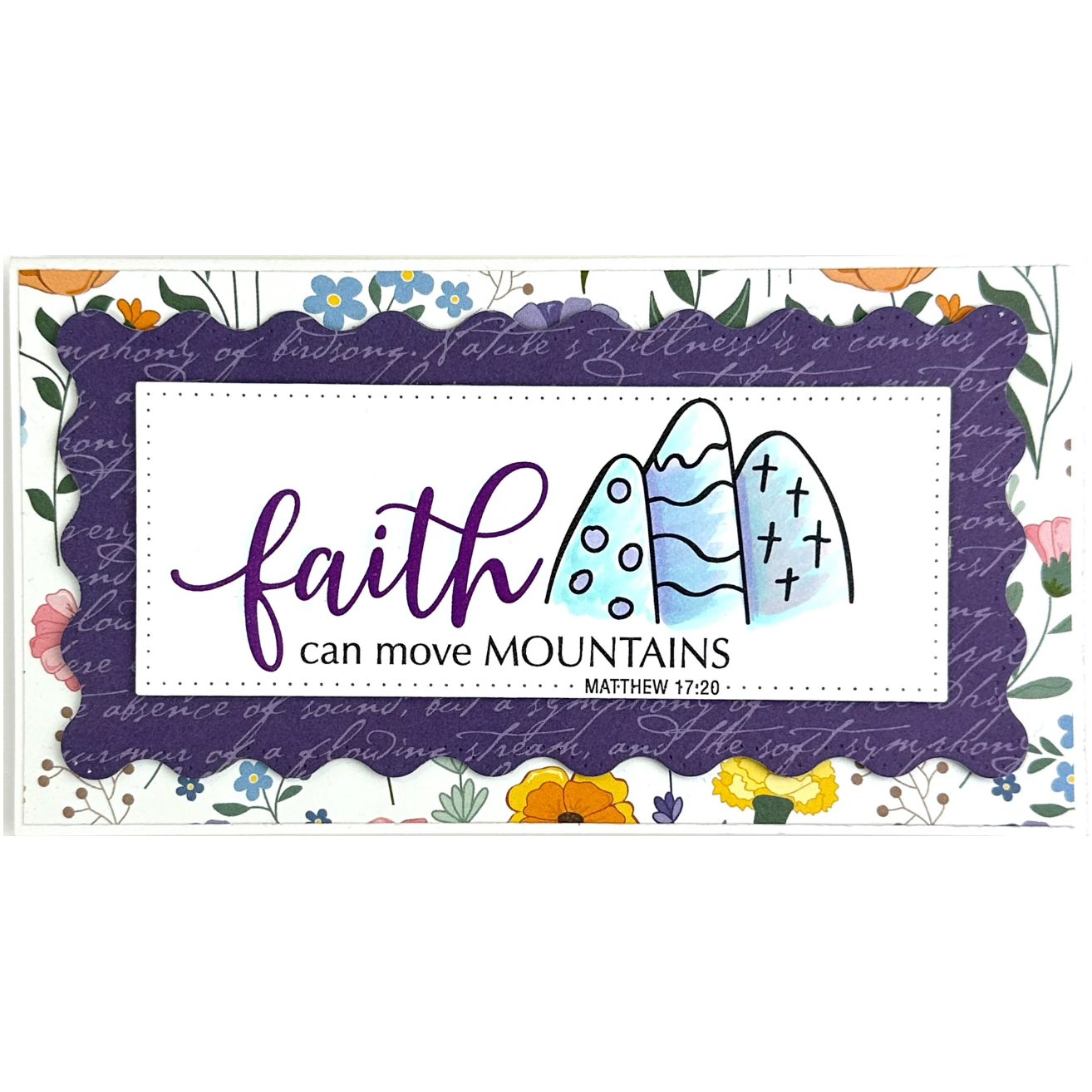 Express your heartfelt messages with divine inspiration using this versatile 4 x 6-inch stamp set. Designed exclusively for card making and scrapbooking, this set includes six sentiments, three mountains, and a bottle of mustard seed, allowing your creativity to soar. Sentiments include: