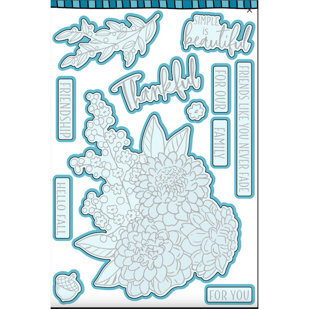 Add elegance to your crafts with the Dare 2B Artzy Simple is Beautiful Stamp and Die Bundle. The 4 x 6 inch clear stamp set includes detailed florals, leafy accents, and sentiments that include,
