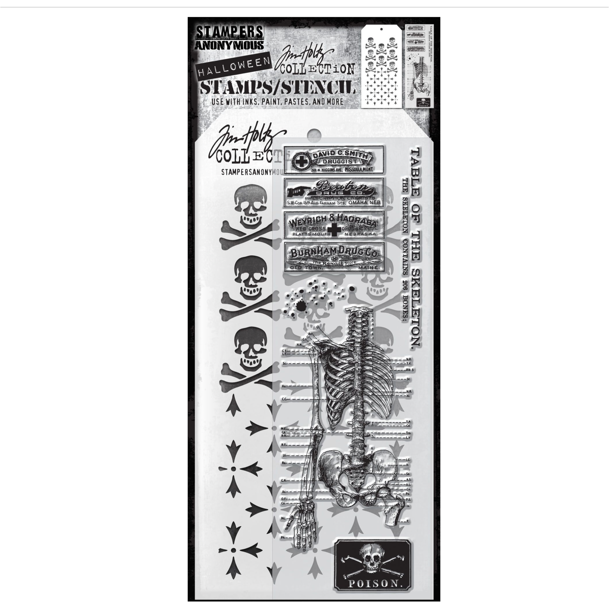Tim Holtz Clear Stamps mixed media set includes clear stamps & a custom layering stencil designed to add texture & imagery to your creativity. Use with your favorite inks, paints, sprays, and pastes.