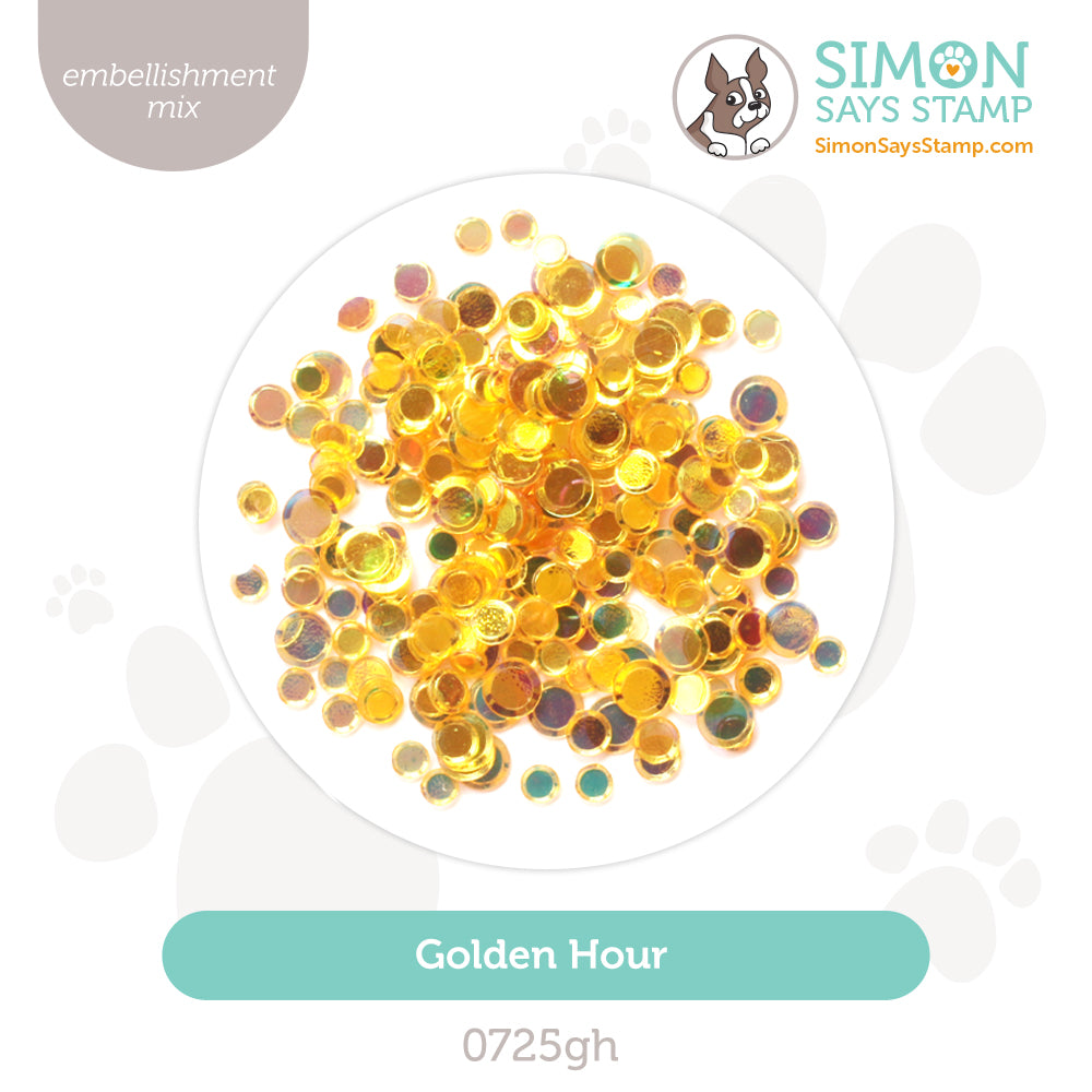 This high-quality confetti adds a delightful shimmer and texture, perfect for card-making, scrapbooking, or any DIY project. Bring a touch of color and sparkle to your designs with the Golden Hour Embellishment Mix.