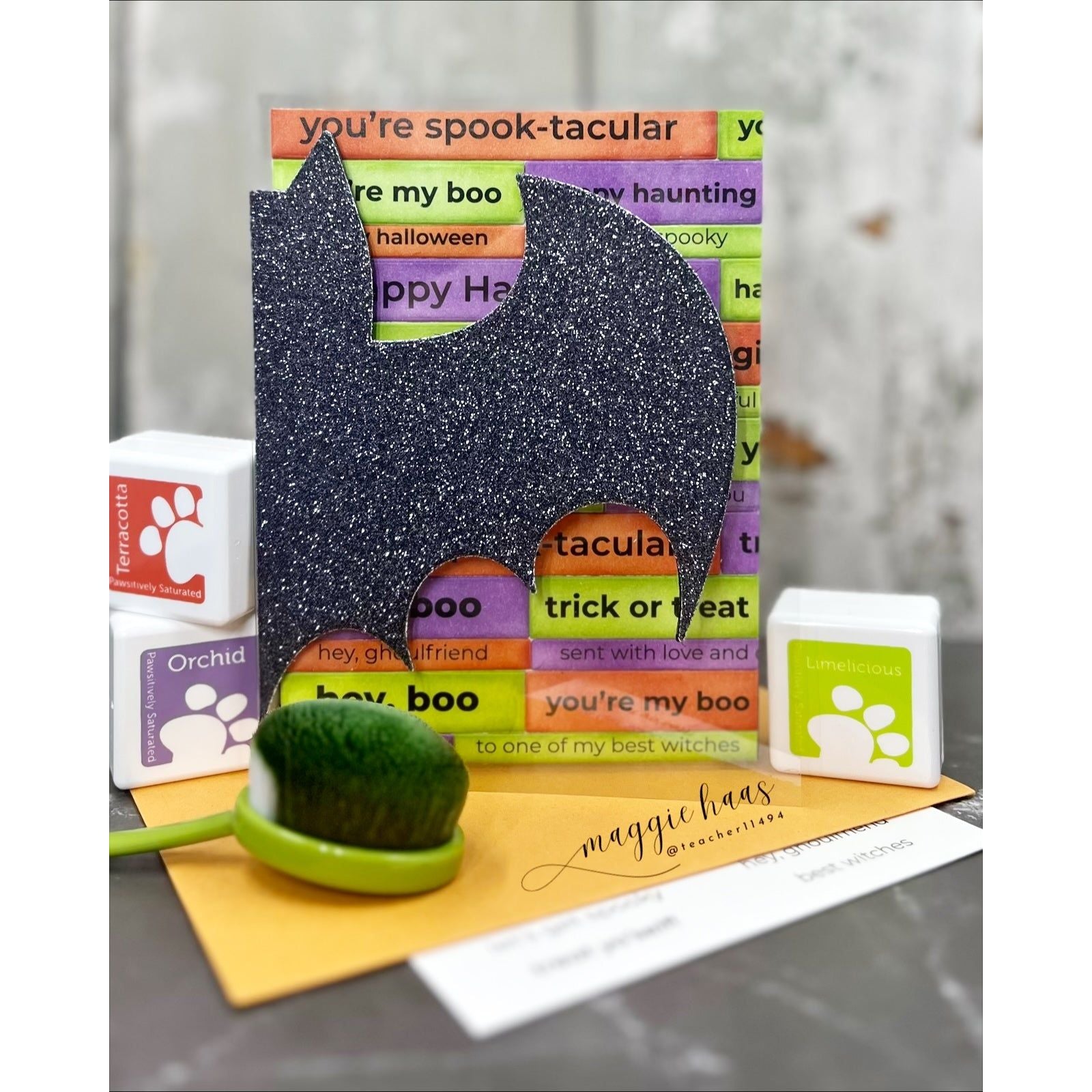 Make your crafting easy with ready-made sentiment strips! This set features greetings useful for Halloween cards and projects and a die to cut them out.