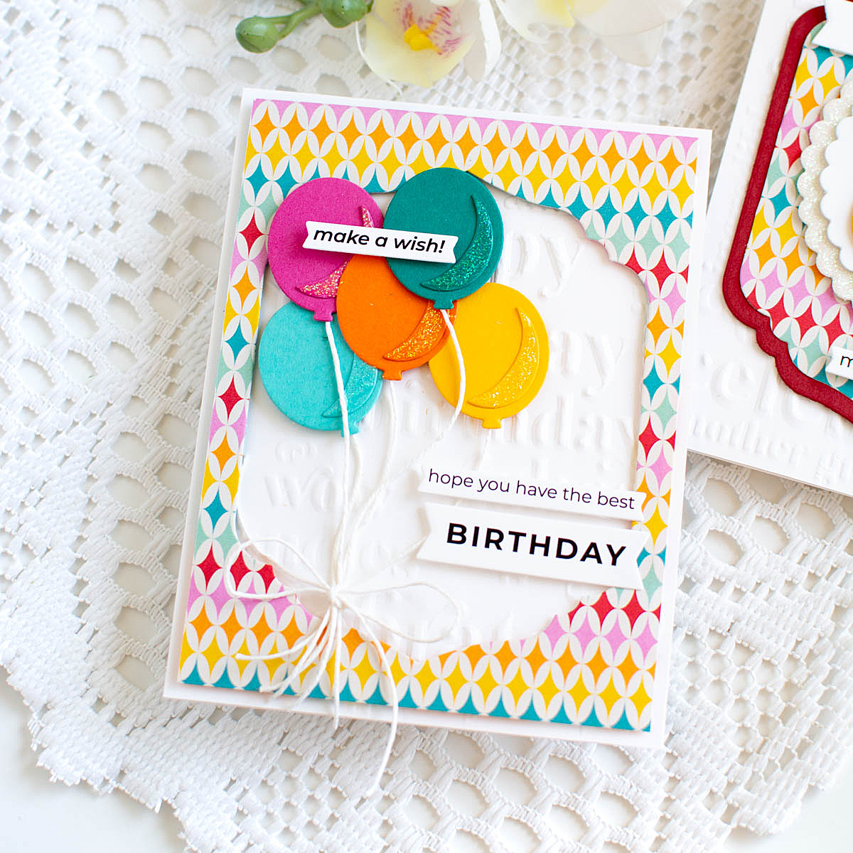 Add festive flair to your projects with the Simon Says Stamp Party Balloon dies. This set includes a classic balloon shape along with a coordinating piece to create a swoop of light, giving your balloon realistic shine and dimension.