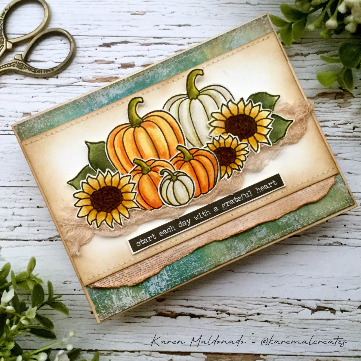 Celebrate the warmth and beauty of the season with the Simon Says Stamp Pumpkin Blessings stamp and die set. This versatile collection features illustrations of pumpkins and sunflowers, along with a graceful ribbon banner intertwined with both.