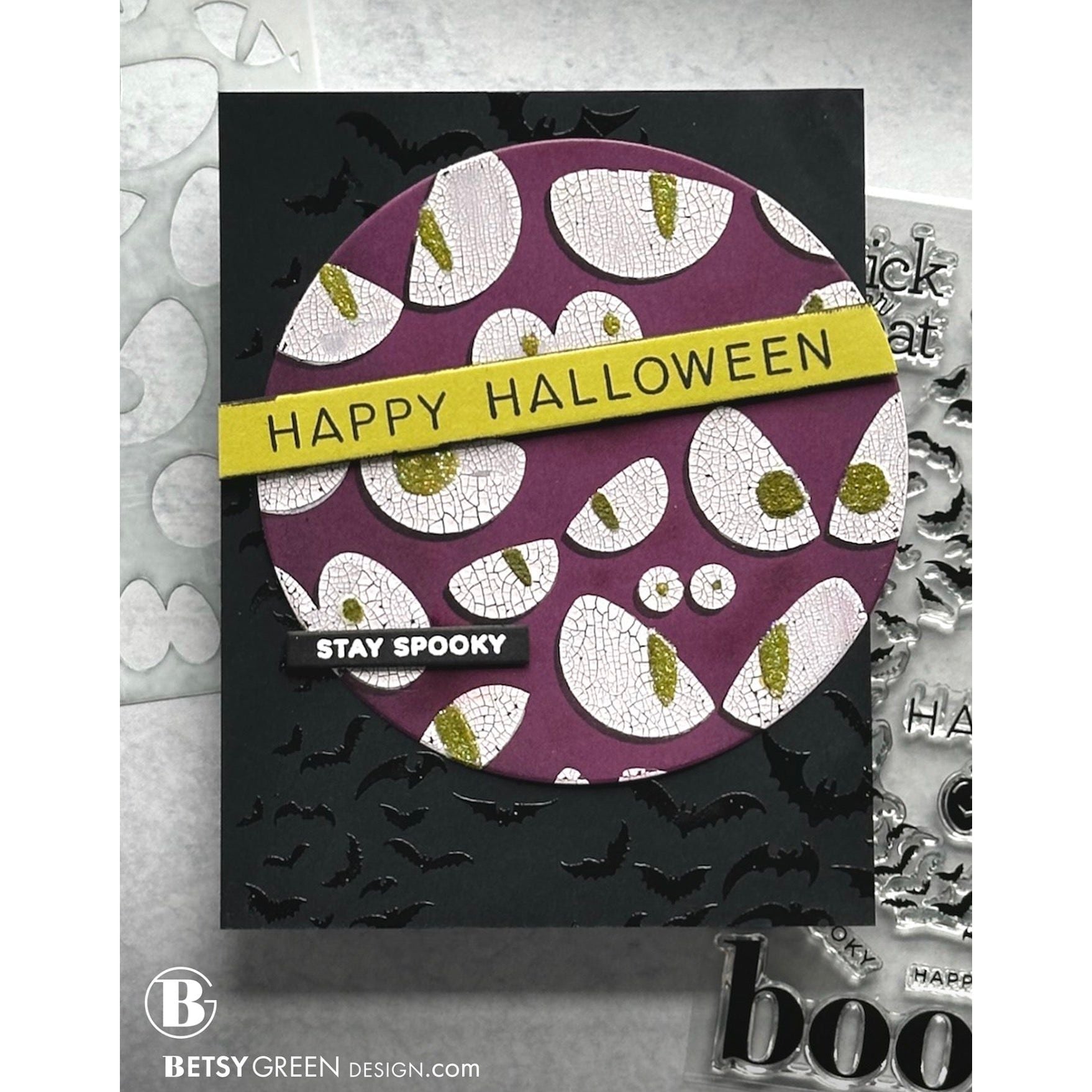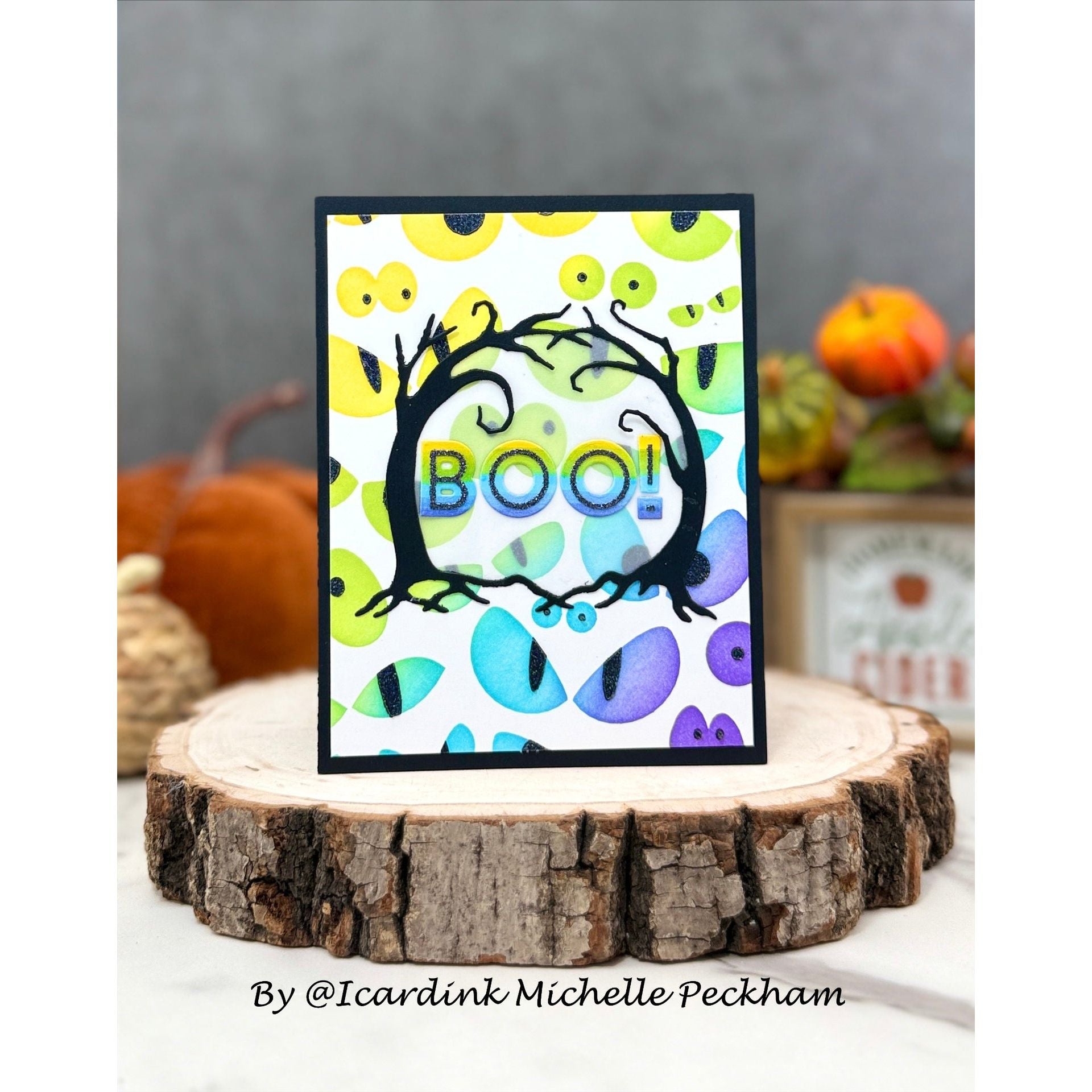 The Simon Says Stamp Spooky Eyes stencil set includes two layering stencils that let you create a chilling background filled with eerie, staring eyes. Designed to be used together, the layers build depth and dimension, giving your projects an unsettling, atmospheric feel that’s perfect for Halloween and other spooky occasions.