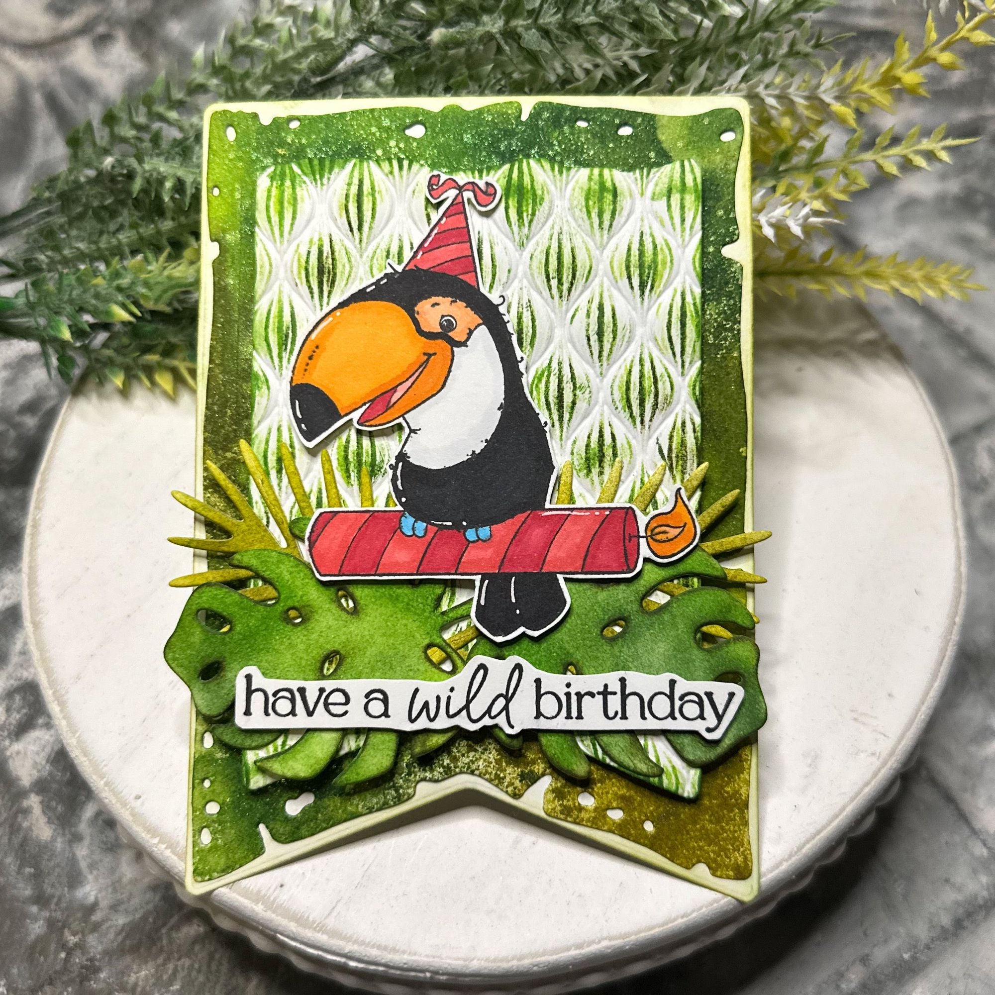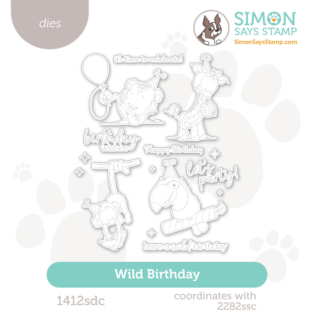 Add dimension and polish to your party-themed projects with the Simon Says Stamp Wild Birthday dies. Designed to coordinate with the Wild Birthday stamp set, this collection cuts out all of the adorable jungle animal illustrations—including the tiger with a balloon, giraffe with a disco ball, monkey with a banana present, and toucan on a candle—along with all of the included sentiments.