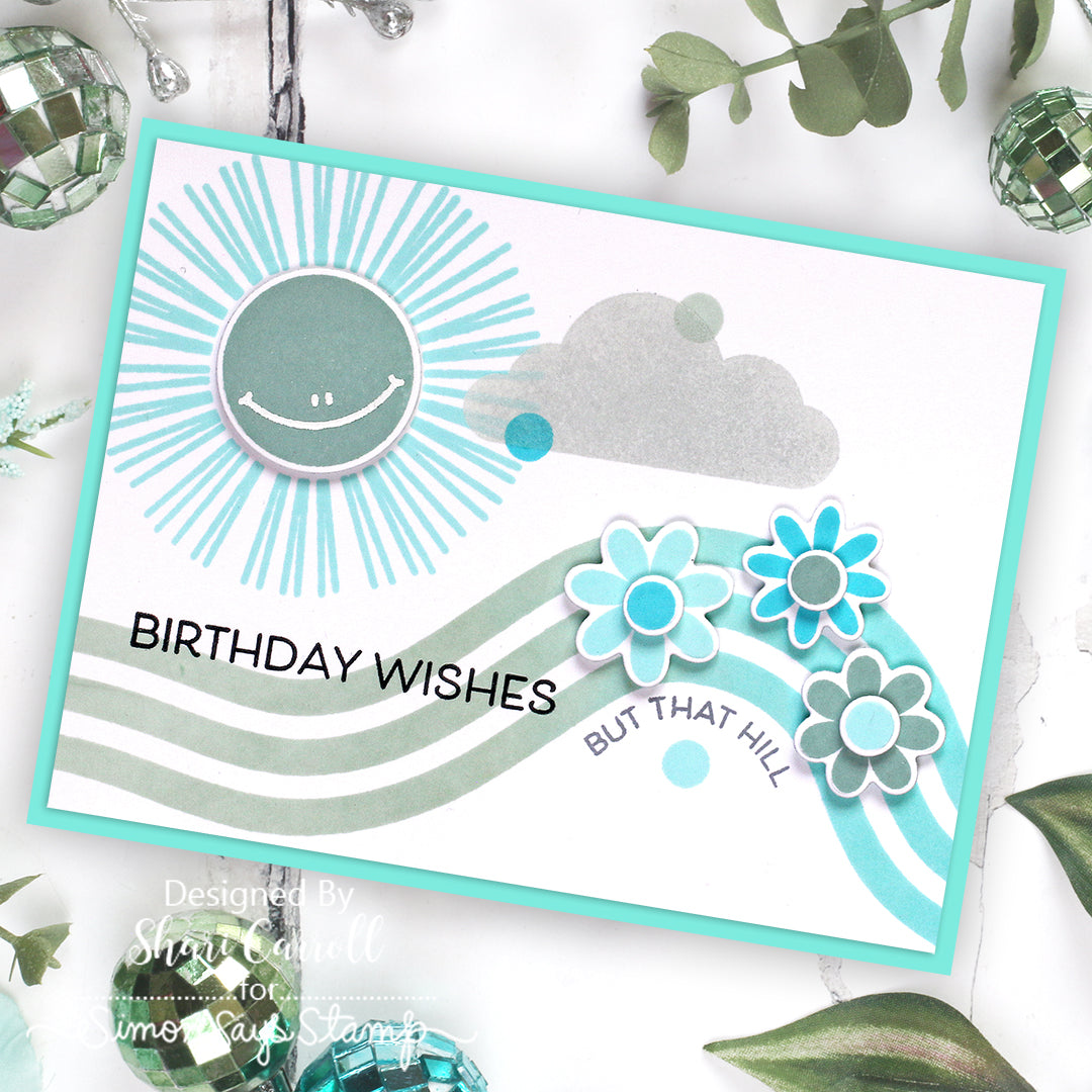 Bring playful energy to your projects with the Simon Says Stamp Birthday Blitz stamp and die set. This bold, graphic collection features fun shapes and patterns, including a curving striped “path” that includes a hill, cheerful hearts, sun and cloud components, and simple, modern flowers.