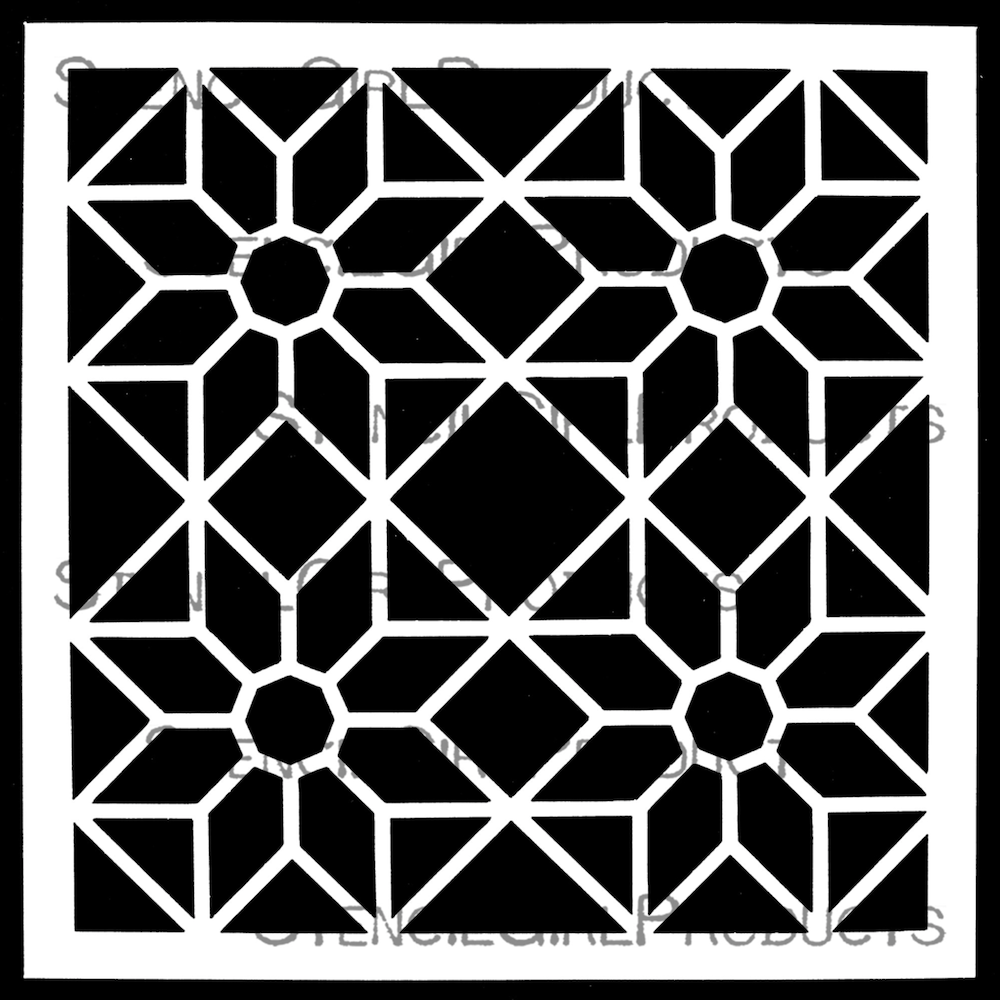 StencilGirl Star Tile Stencil, designed by Mary Beth Shaw, features an intricate geometric star pattern perfect for adding bold structure and eye-catching detail to your mixed-media projects. Measuring 6 x 6 inches and crafted from 7 mil mylar, it is sturdy enough for repeated use while remaining thin enough to deliver crisp, seamless results with paint, ink, pastes, and more. Made in the USA, this stencil brings timeless pattern and modern versatility to your creative toolkit.