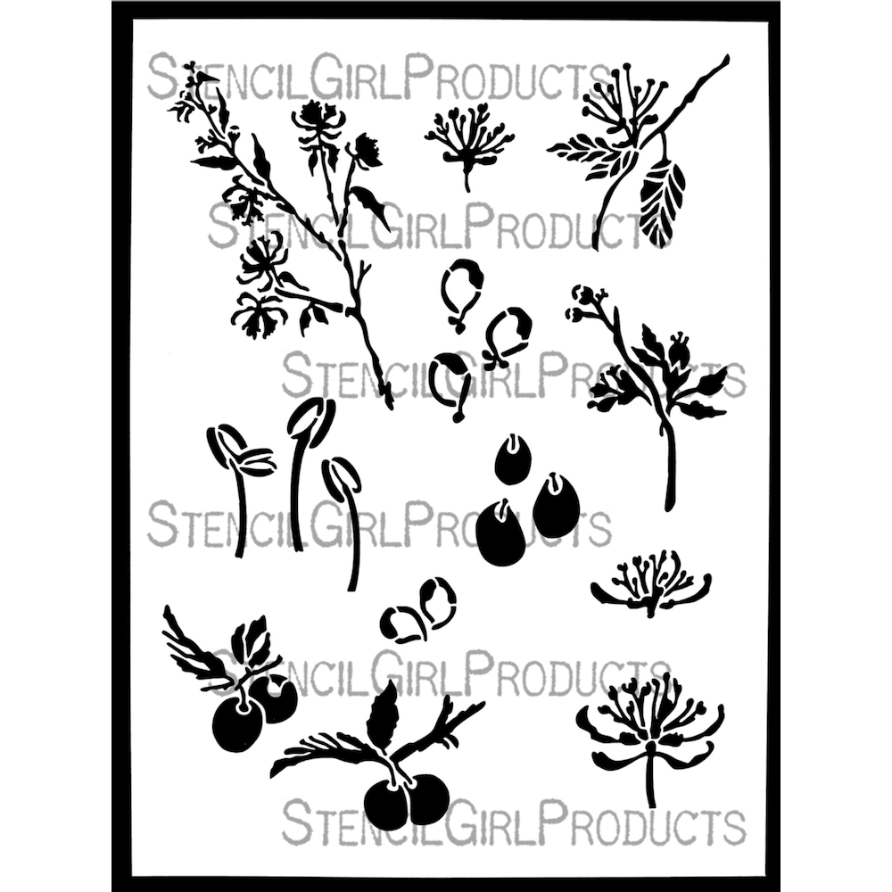 Bring the beauty of wild gardens into your art with the Wild Fruit and Petals Stencil.