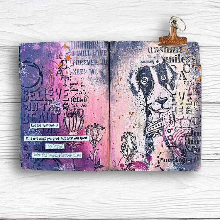 Stamperia Furry Friends Collection by Antonis Tzanidakis celebrates the joy, companionship, and quirky charm of beloved pets. Measuring approximately 10 x 4.75 inches, this Quotes Pattern stencil features a collage of uplifting words and phrases including “Purrfect,” “Believe in the beauty of this life,” “Fur-ever friends,” “Sunshine and smiles,” “Just have fun,” “Dog,” “Cat,” “Stay pawsitive,” “Cute,” and “Walks are my love language.” Perfect for adding heartfelt detail to your mixed-media, journaling, and papercraft projects.