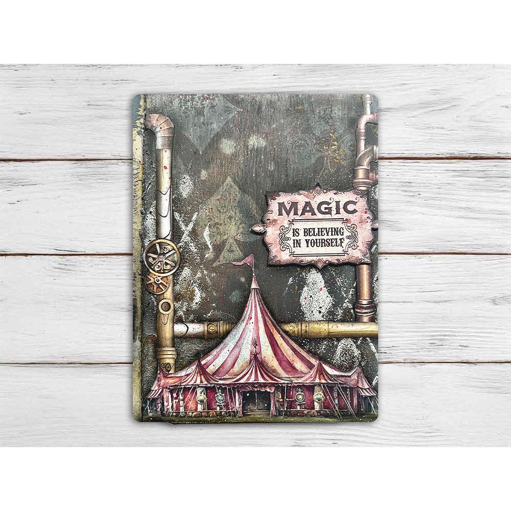 Master of Magic was designed by Antonis Tzanidakis, also known as Mr. Vagabond. This Collection captures his ongoing journey, drawing inspiration from the enchanting world of the circus—a realm of magic, transformation, and positive energy. This 8 x 10-inch stencil features a bold argyle pattern, perfect for creating striking backgrounds with a touch of vintage elegance. Use it with inks, paints, or texture pastes to add depth and dimension to mixed media projects, journal pages, and papercrafting creations.