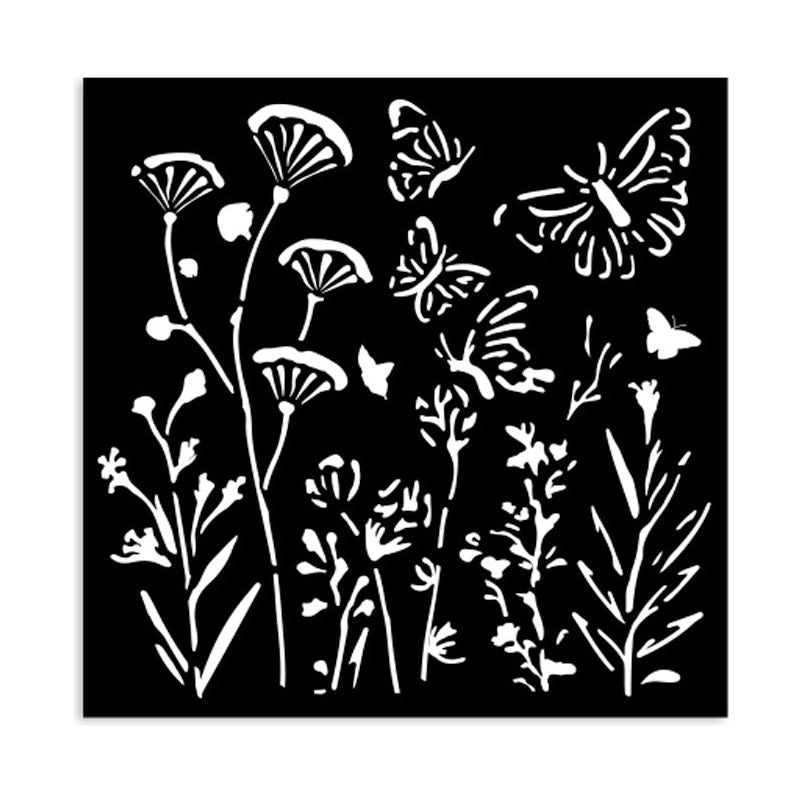 Stamperia Poppies And Butterfly Small Stencil is a delicate and versatile tool for adding floral elegance to your creations. Measuring approximately 4.72 x 4.75 inches, this stencil features leafy stems of wildflowers paired with fluttering butterflies. Ideal for mixed media, card making, journaling, and scrapbooking, it can be used with inks, paints, texture pastes, or sprays to create stunning backgrounds and focal points.