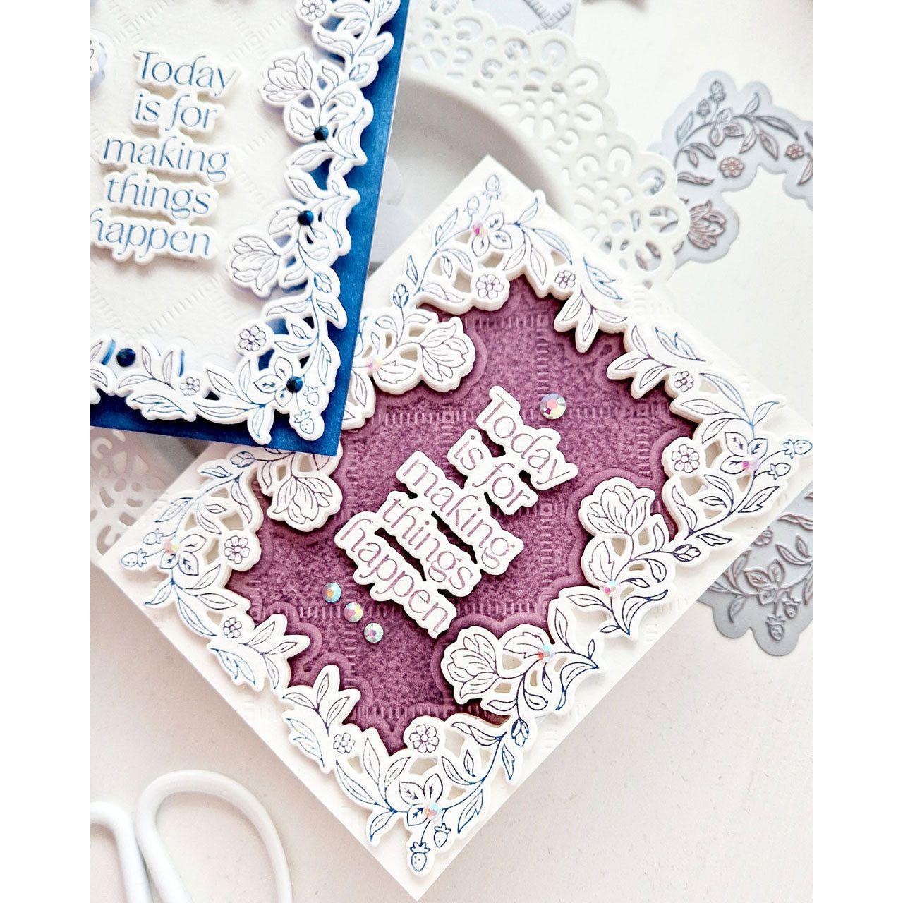 Enhance your papercrafting and stationery projects with the 1 pc Press Plate set designed by Inna Moreva. This set coordinates perfectly with the Making Things Happen stencil set (239324), die set (239224), and stamp set (239124). Achieve the look of elegant letterpress with Pinkfresh Studio's gorgeous Press Plate designs, created to work seamlessly with the BetterPress LetterPress System from Spellbinders. These press plates are also compatible with hot foil systems, providing added versatility to your crafting projects. Measuring at 4.25 x 5.5 inches, Pinkfresh Studio press plates are crafted to perfection and will add a touch of sophistication to all your projects. Add this dual purpose product to your collection and experience the beauty and luxury of LetterPress stationery.
