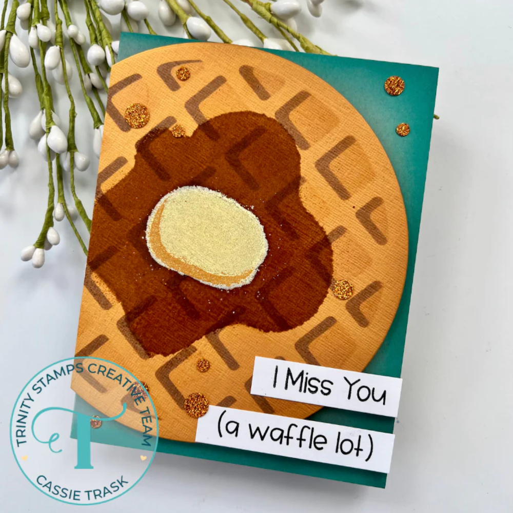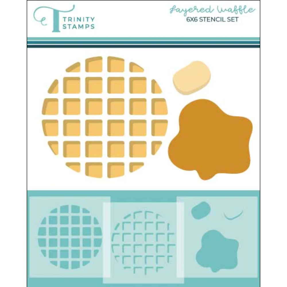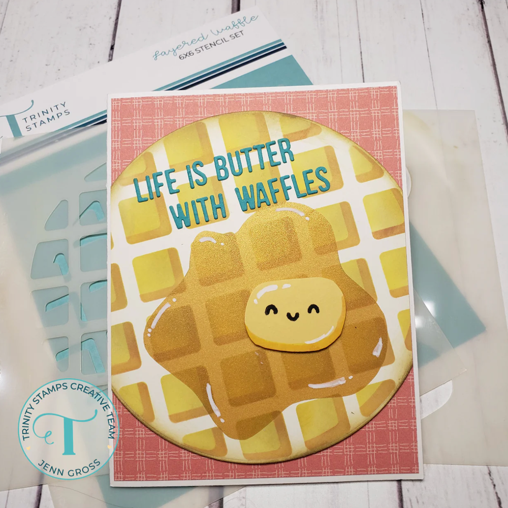The Trinity Stamps A Waffle Lot Stencil Set includes three 6 x 6 inch stencils designed to create the perfect 4 inch waffle with butter and syrup. Use it on its own or pair it with the Trinity Stamps Circle Card Die Set to make waffle-y cute cards and projects!