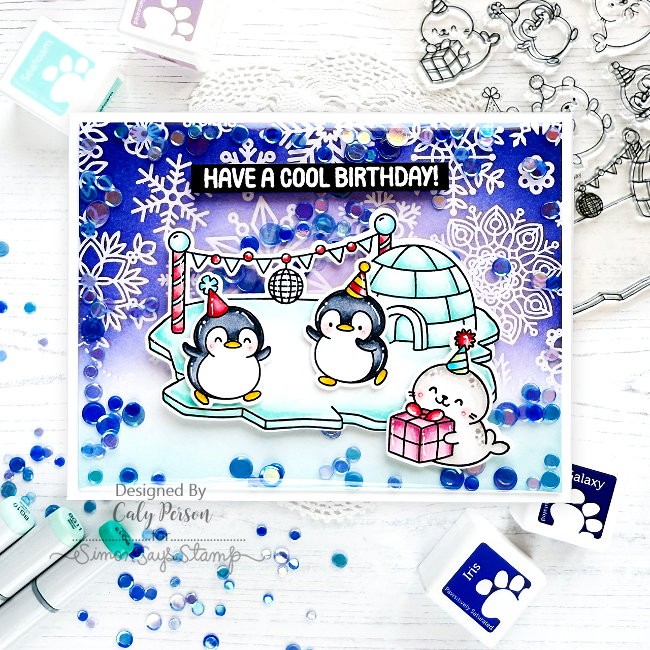The Simon Says Stamp Cool Birthday dies coordinate perfectly with the Cool Birthday stamp set, giving your frosty party scenes extra polish and dimension. This die collection cuts out all of the playful images, including the penguins, seals, and bears in their festive party gear, as well as the icy floe with the decorated igloo, disco ball, and banner.