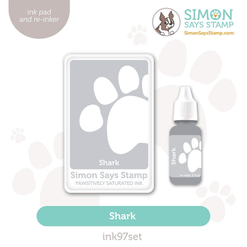 Introducing the Simon Says Stamp Pawsitively Saturated Ink pad and re-inker in Shark! This saturated dye ink has a raised surface for inking any size stamp and a durable foam pad for transferring just the right amount of ink.