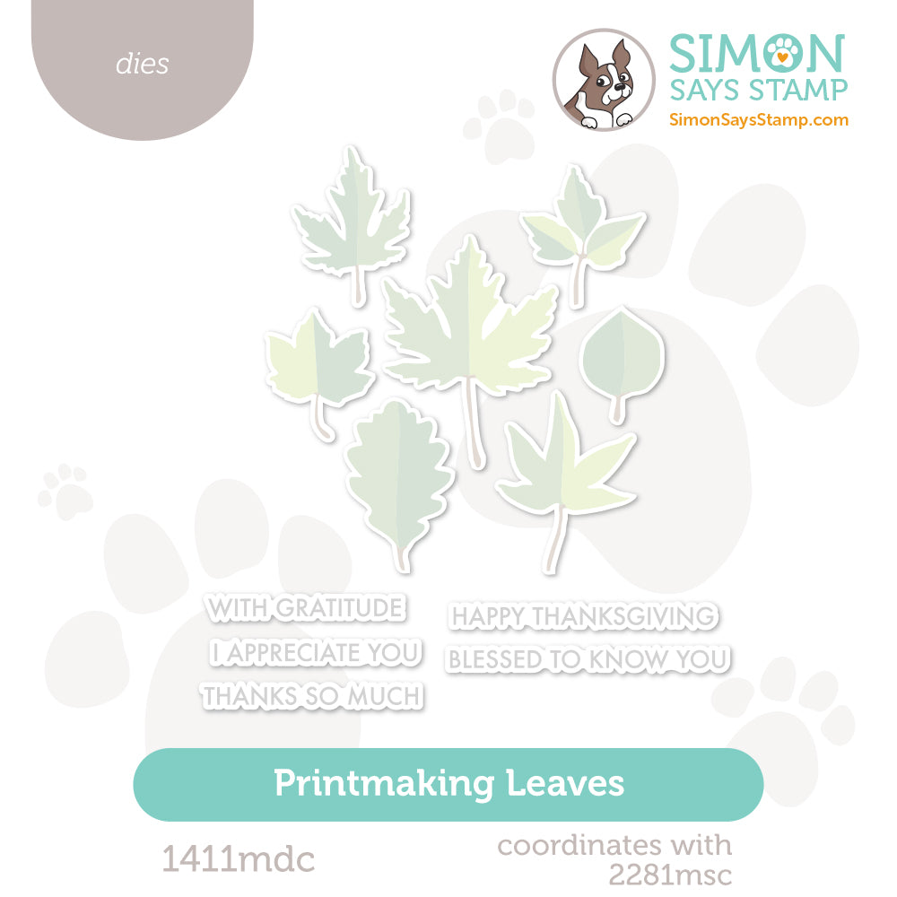 The Simon Says Stamp Printmaking Leaves dies coordinate with the Printmaking Leaves stamp set, giving your projects a polished, dimensional finish. This die collection cuts all of the finished leaves with stems, allowing you to easily highlight or layer the greenery in your designs.