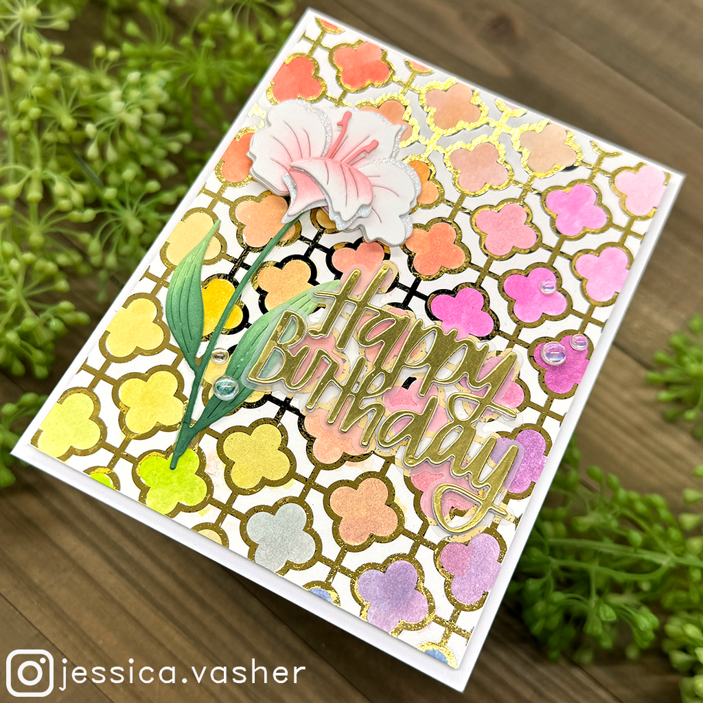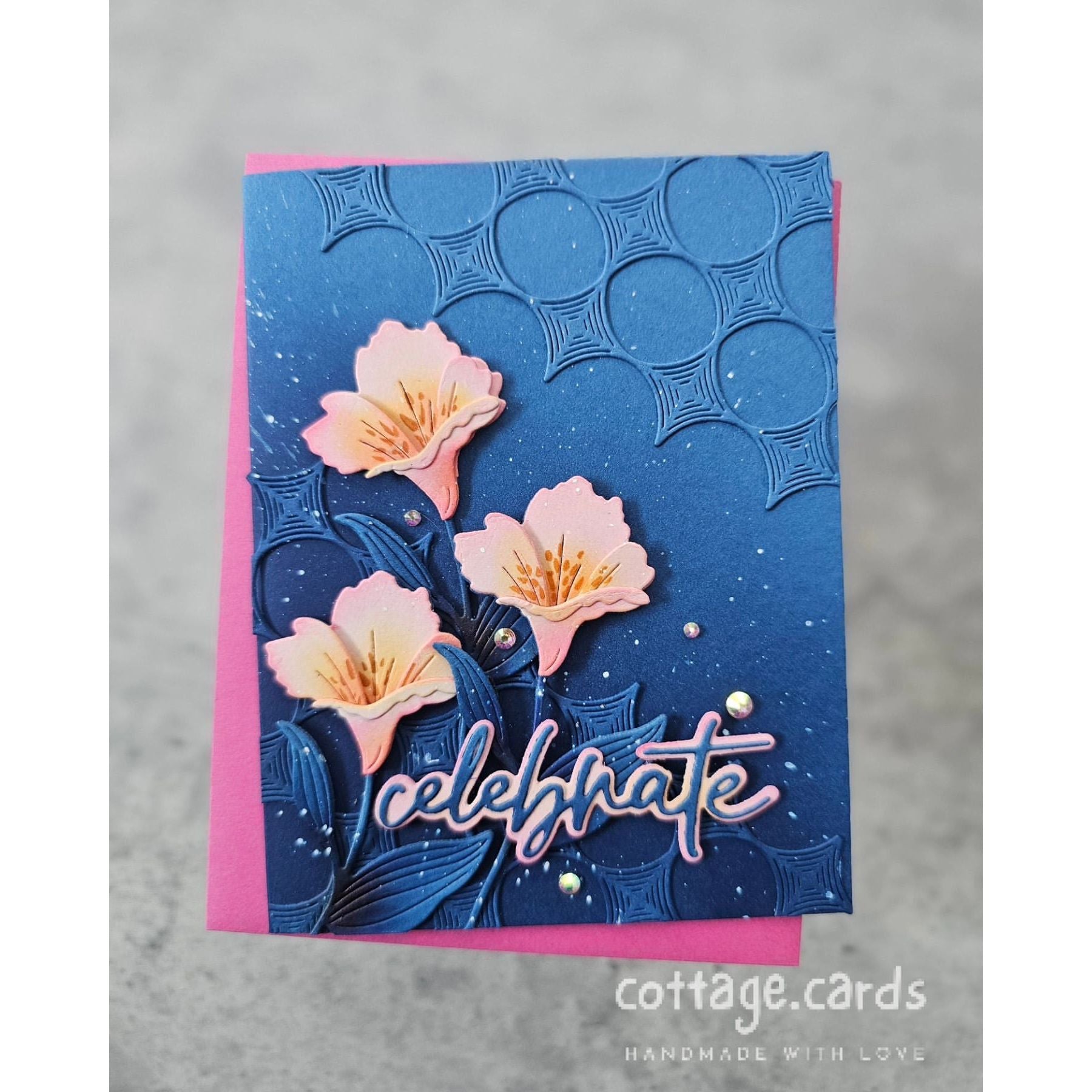 The Simon Says Stamp Alstroemeria Stem die cuts a stem, leaves, petal pieces, and stamen, allowing you to create a beautiful, dimensional flower.
