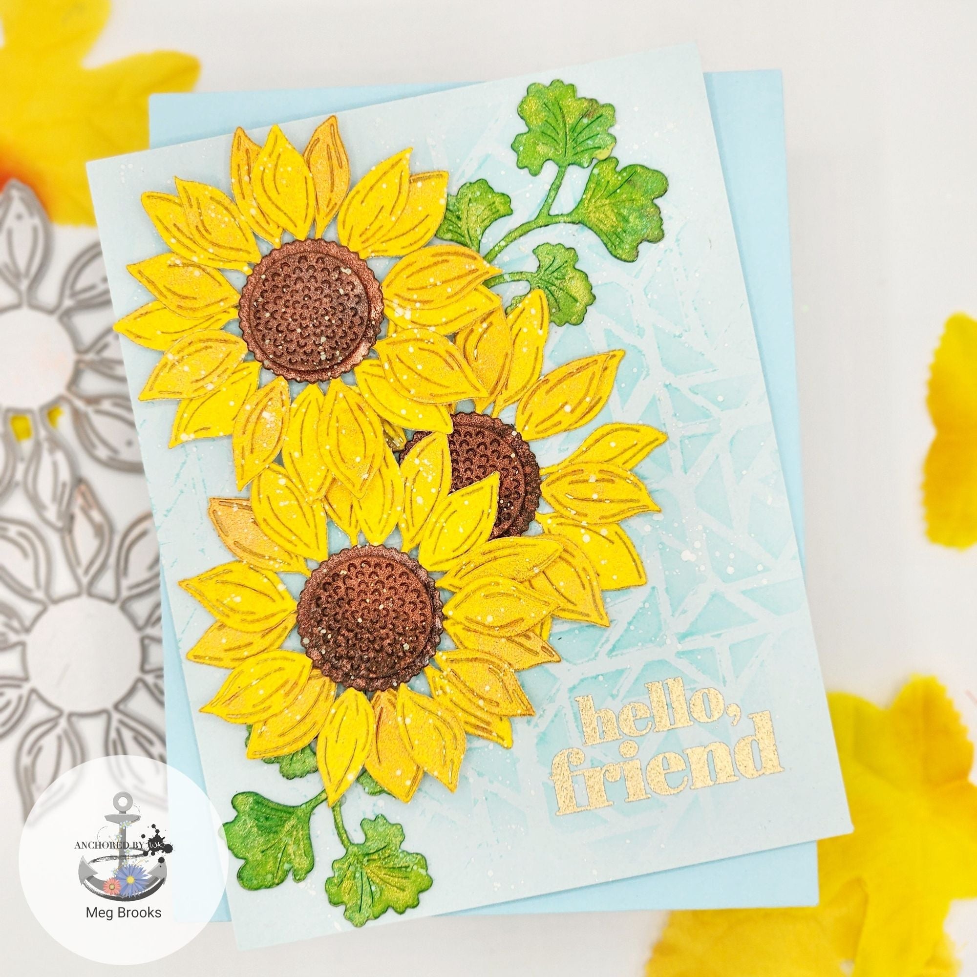 The Simon Says Stamp Autumn Sunflower die is a substantial layering die that cuts beautifully detailed etched petals and textured centers.