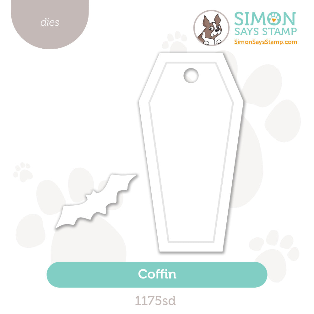 The Simon Says Stamp Coffin dies cut out a spooky coffin shape with a convenient hole, making it perfect for tags or Halloween projects. The set also includes a small bat die to add an extra eerie detail.