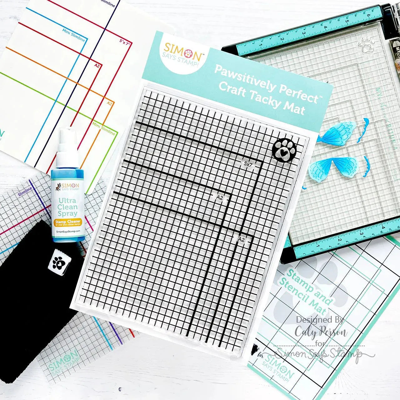 Before using the mats, remove the foam spacers inside your stamp positioning tool. The top acetate sheet can be left on the Craft Tacky Mat when the tacky surface isn’t needed inside your stamp positioning tool and helps with easy clean up. In addition, the top acetate sheet can be replaced with our Pawsitively Perfect Placement Guides: Large Mat and Transparency (st0130, sold separately) for a more durable surface with colorful and easy-to-see markings.