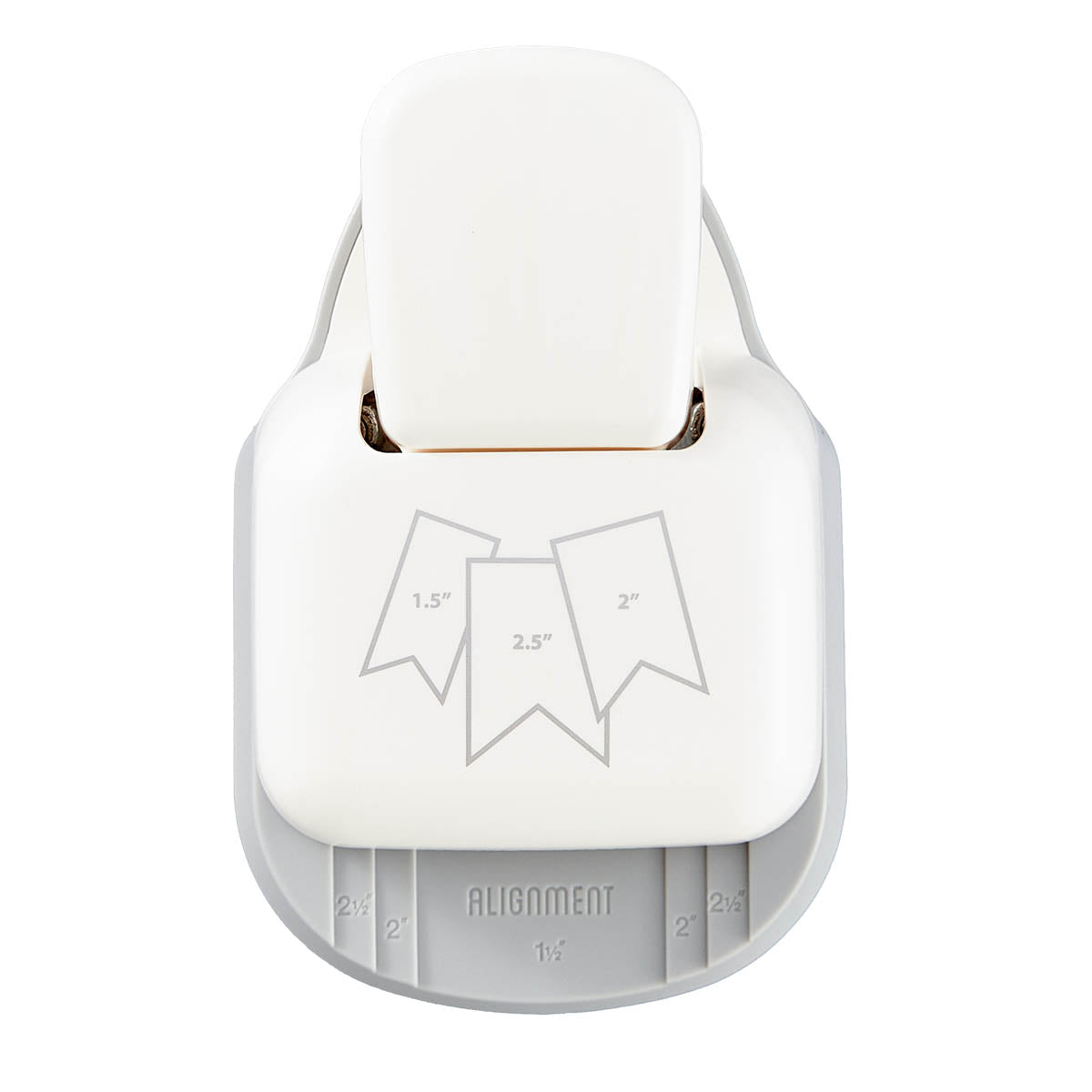The Spellbinders 3-in-1 Banner Punch allows the creation of three different sizes of banners: 1.50 in., 2.00 in., and 2.50 in. mm in width. It features easy-to-use guides for accurate paper placement, making it ideal for cardmaking, memory keeping, gift wrapping, and more.