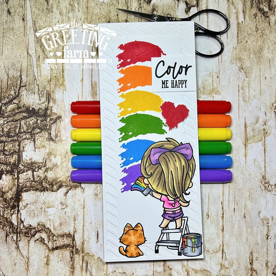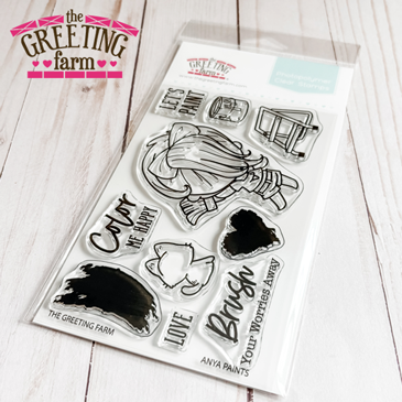 Capture creative moments with The Greeting Farm Anya Paints Stamps set. This 10-piece collection of 4x6 inch clear stamps features Anya painting with a brush, a ladder, a curious kitty, paint strokes, a bucket, and a painted heart. Complementary words and sentiments add versatility, making it ideal for detailed, expressive cardmaking and scrapbooking projects. Designed for precision and artistic flair, these stamps bring charm and personality to your crafts. Words and sentiments included: