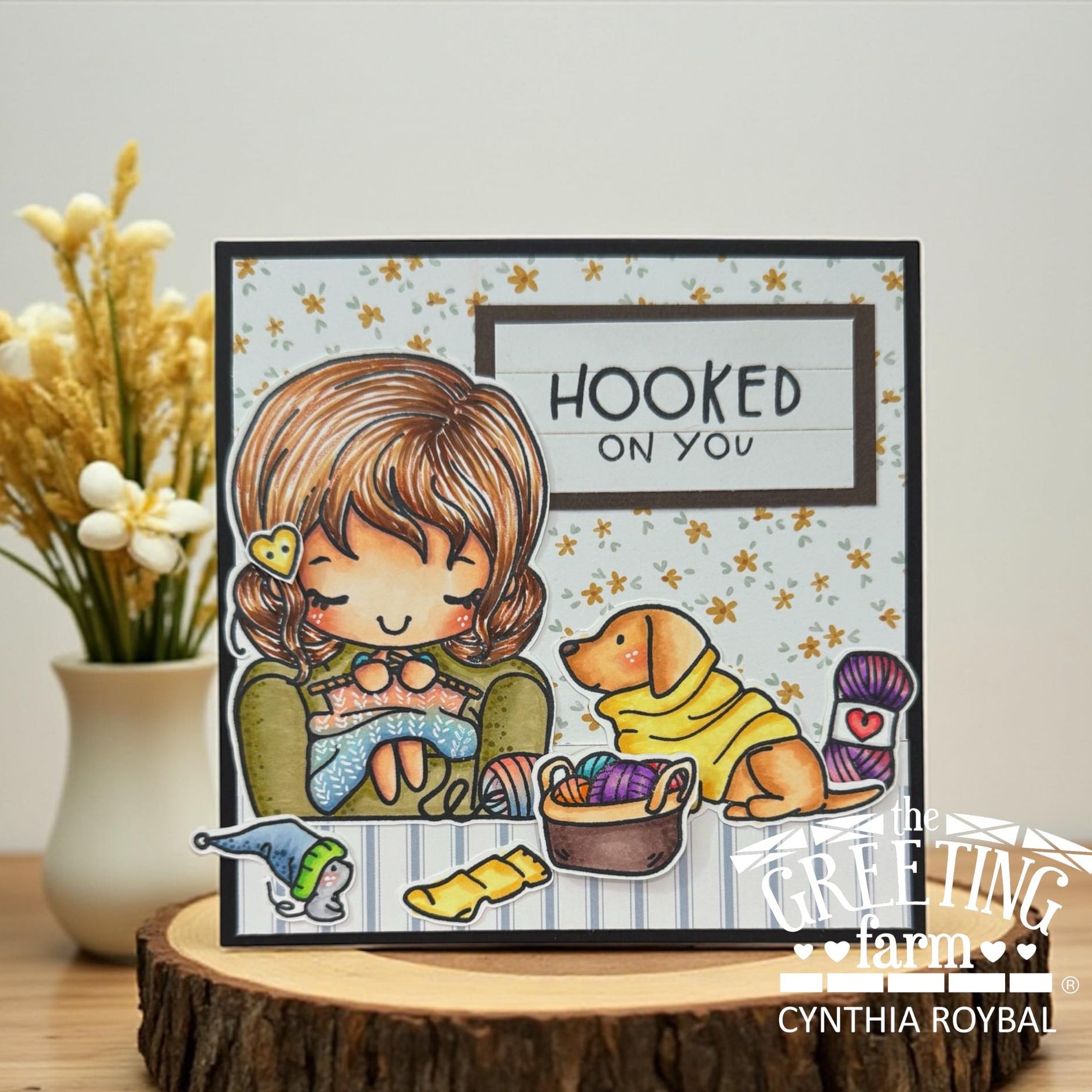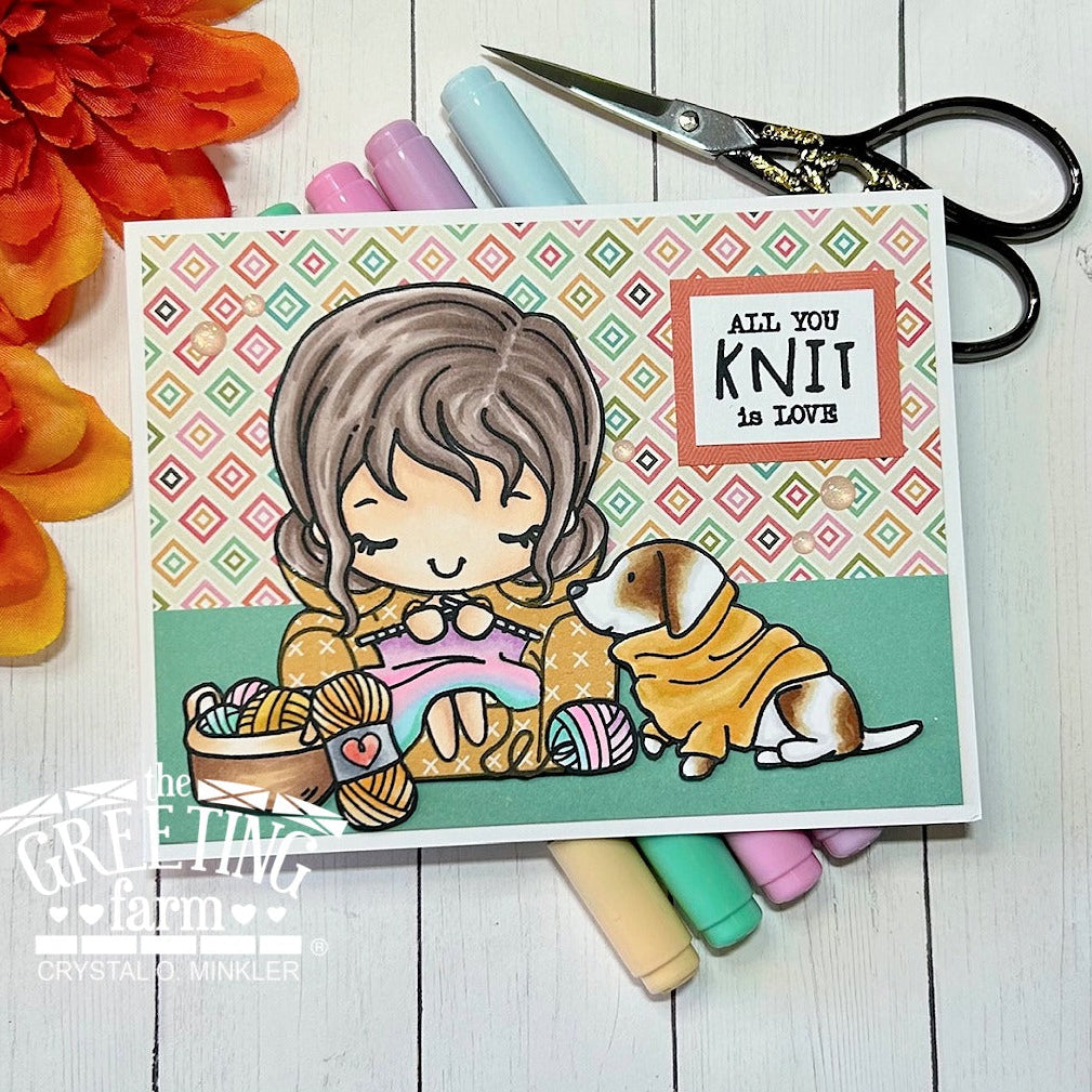 Create the coziest crafts with The Greeting Farm Knitting Anya Stamps! This charming 4x6-inch clear set features Anya relaxing in her comfy chair with yarn and knitting needles, alongside her dog sporting a snug sweater. Complete the scene with a scarf, hat, basket of knitting, ball of yarn, heart button, and three pun-filled sentiments perfect for adding warmth and whimsy to your cards and tags. Sentiments included: