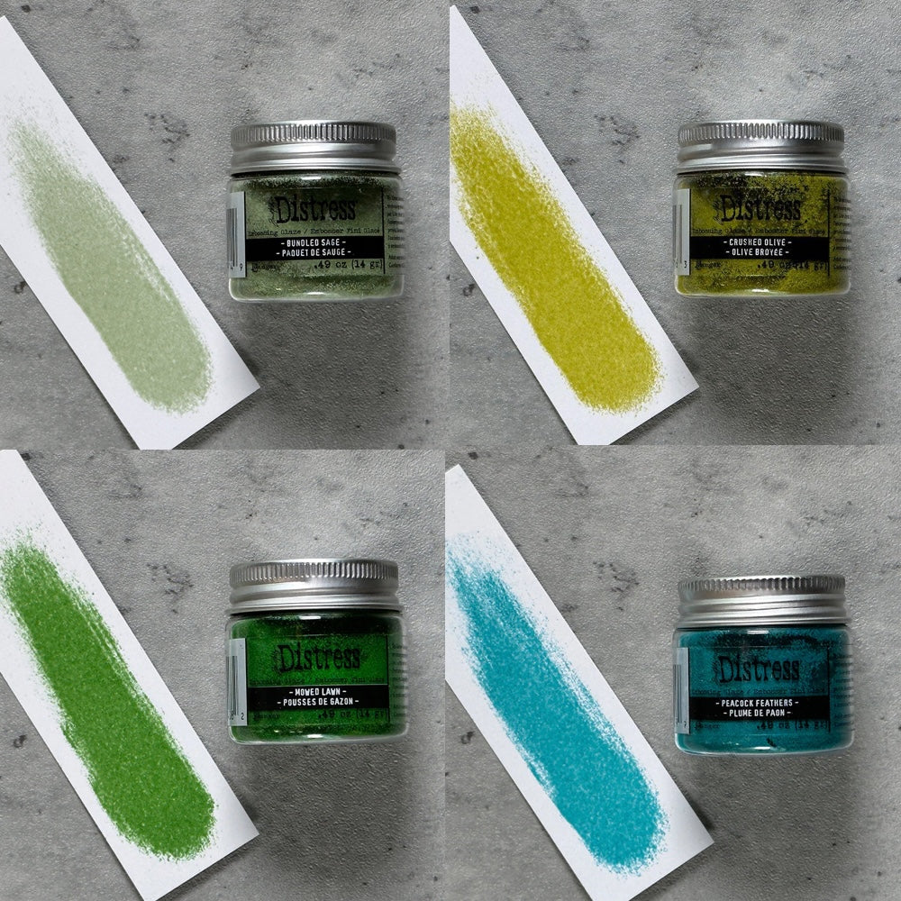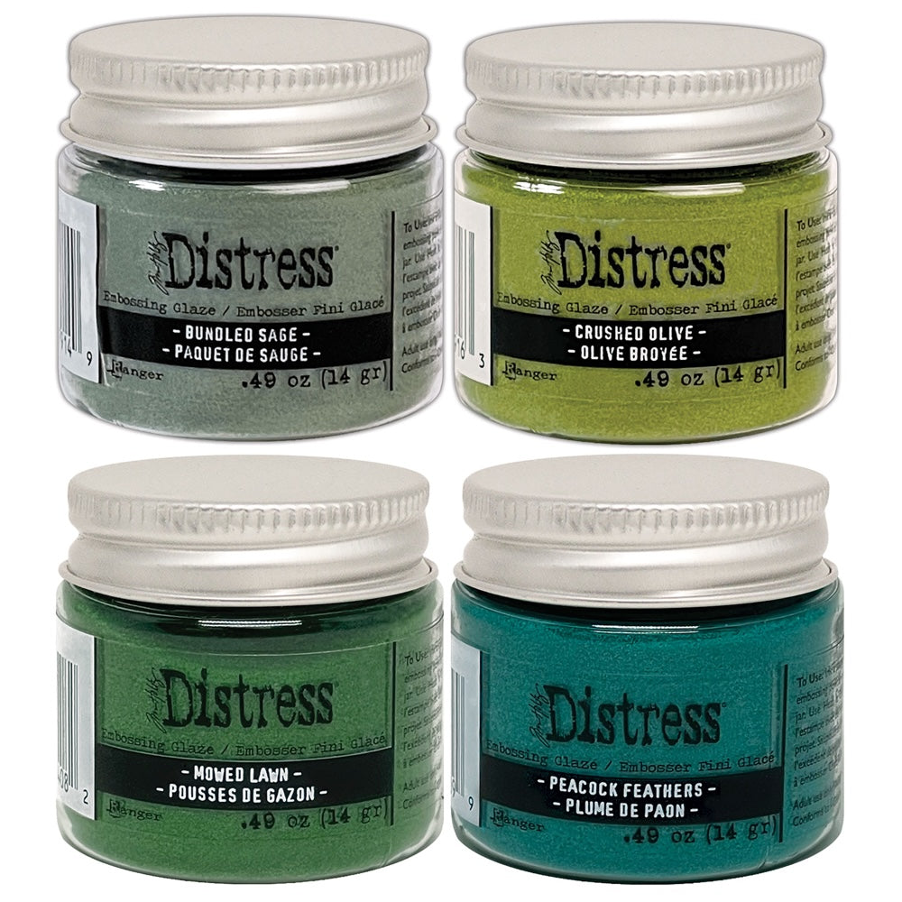 4 Tim Holtz Distress Embossing Glaze colors are included in this bundle: