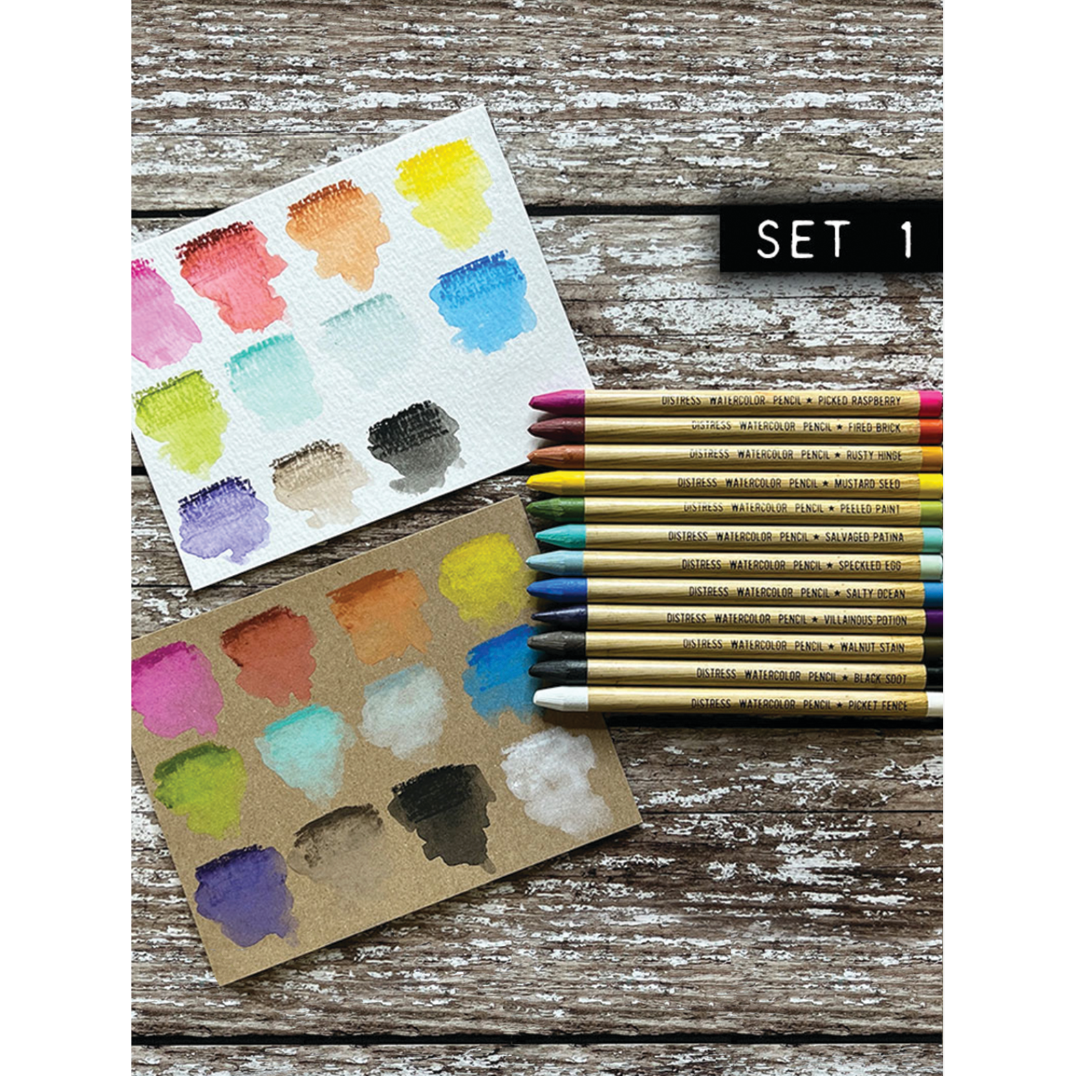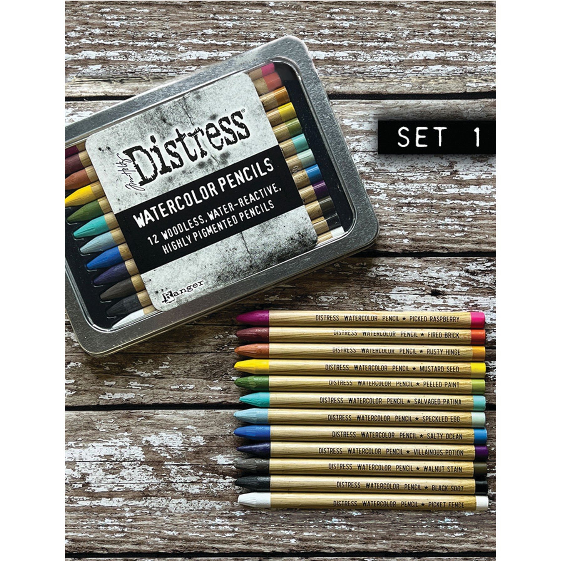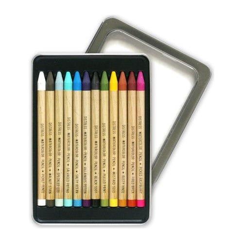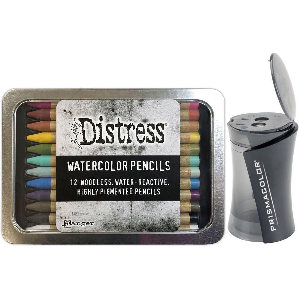 The Tim Holtz Distress Watercolor Pencils Set 1 And Pencil Sharpener Bundle includes woodless watercolor pencils specially designed for vibrant coloring on porous surfaces. These water-reactive pigments are perfect for a variety of techniques such as watercoloring, shading, and sketching. Simply color directly onto the surface and blend with water to create beautiful effects. For even more possibilities, layer with other Distress products like Ink, Oxide, Sprays, or Paint. Approximate tin dimensions: 4.5 x 6.4 inches. The bundle also includes a high-quality pencil sharpener with two built-in sharpeners, one for colored pencils and one for graphite/Verithin pencils. Made with German blades, a sliding cover, and a transparent housing, this sharpener is both efficient and durable. Measuring 3 inches tall and 1.75 inches in diameter, it is a must-have tool for any artist.