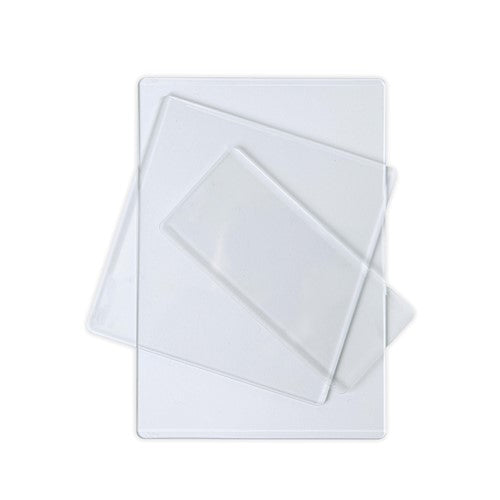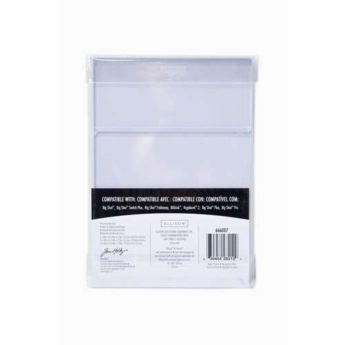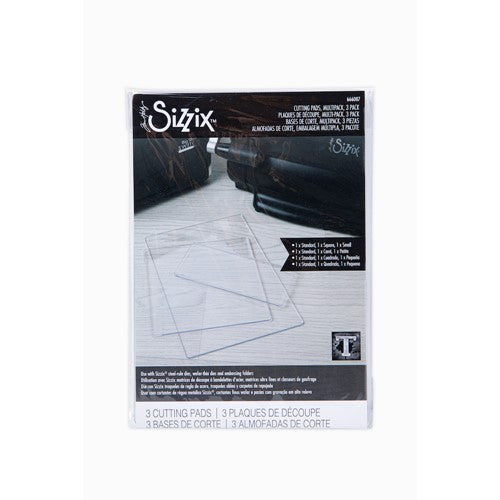 Curated by Tim Holtz, this set of cutting pads allows you to cut a variety of different sized dies with ease. Constructed of high-quality polycarbonate plastic, these see-through Cutting Pads allow for easy die-cutting. Use with wafer thin dies and embossing folders. Compatible with most machines. Folders are approximately 6.125 x 8.875, 6.125 x 6.125 and 6.125 x 2.75 inches.