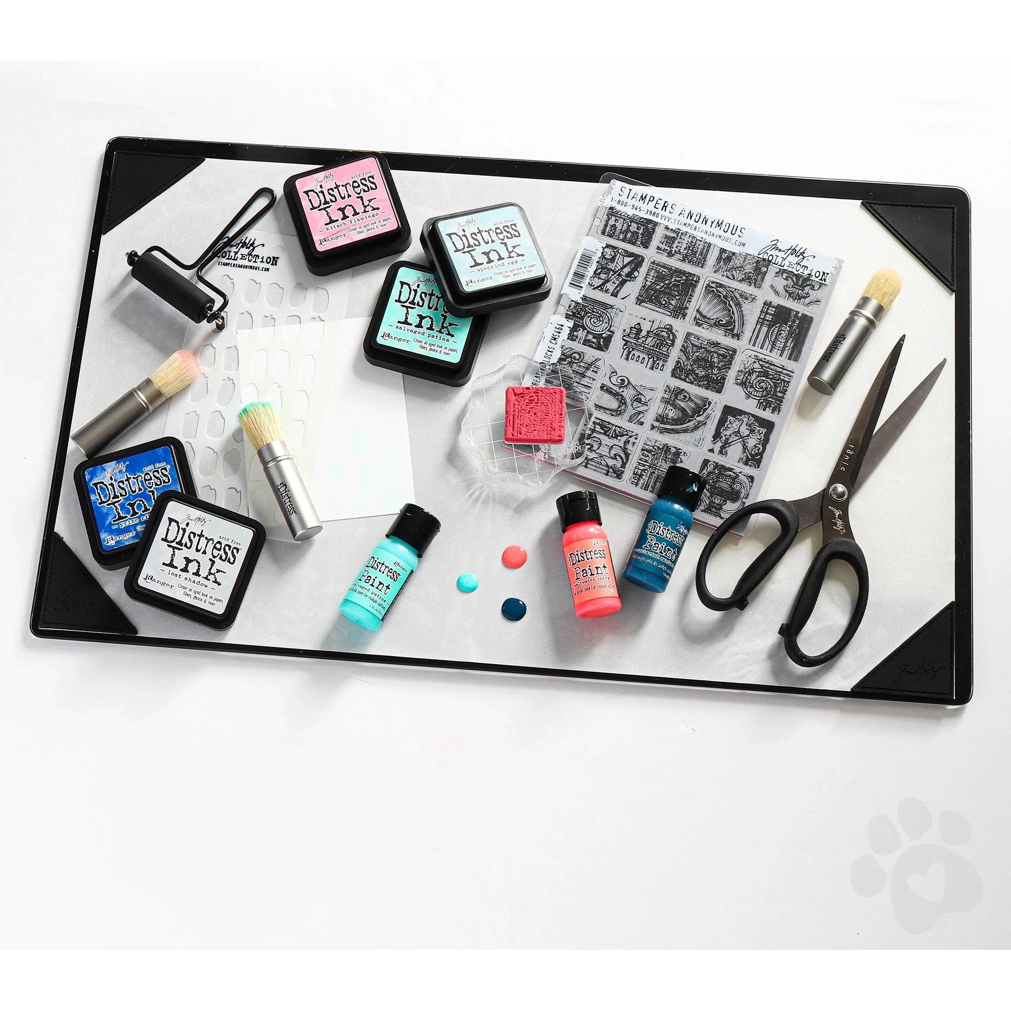 Designed to fit perfectly with the Tim Holtz® Glass Media Mat, this surface mat comes with a non-slip base to prevent any unwanted movement while you work. The reinforced stitched corners and weighted edges also ensure that the mat stays flat and does not roll up, providing a stable surface for all your crafting needs.