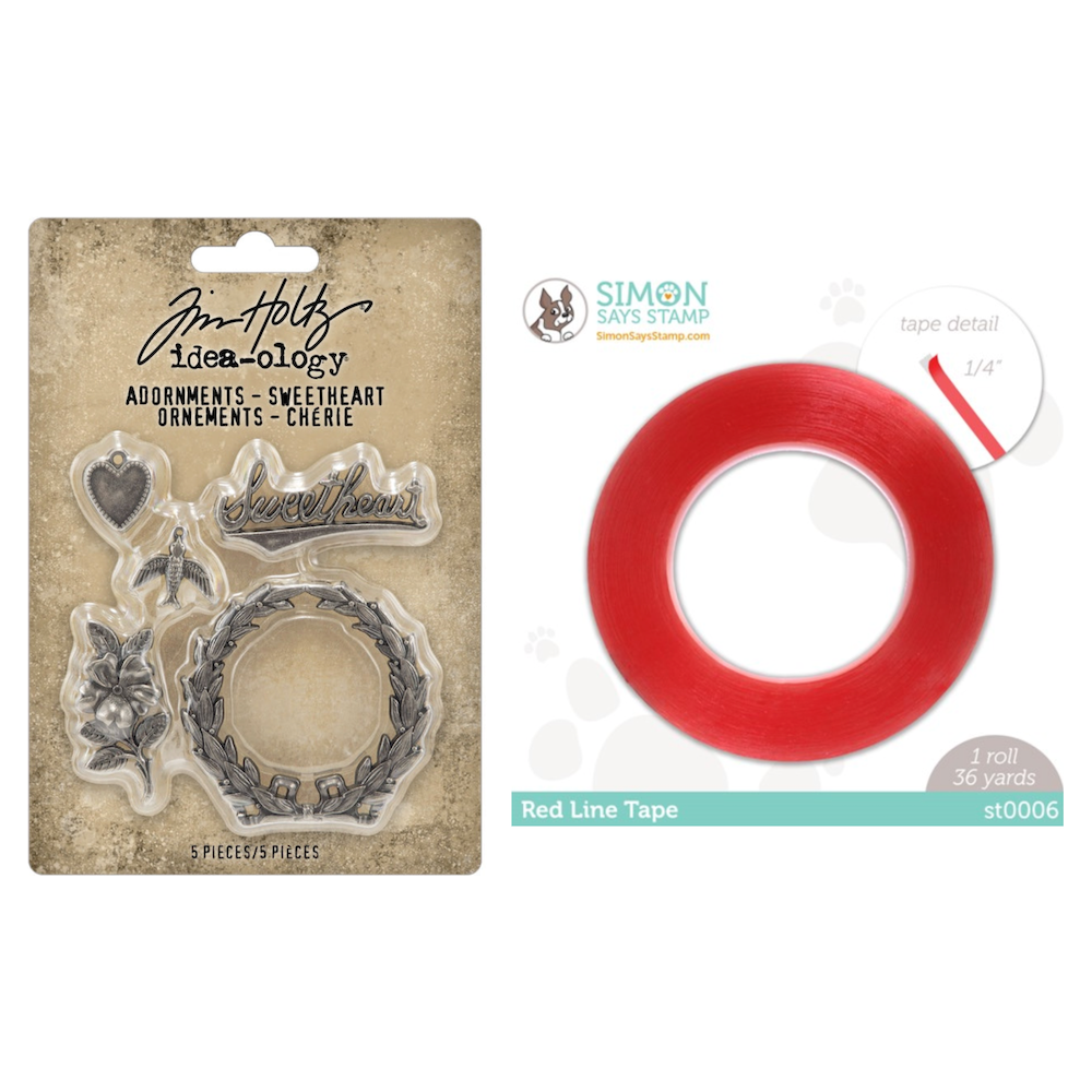 Introducing the Tim Holtz idea-ology Adornments Sweetheart and Red Tape 1/4 Bundle, a perfect duo for your crafting needs.