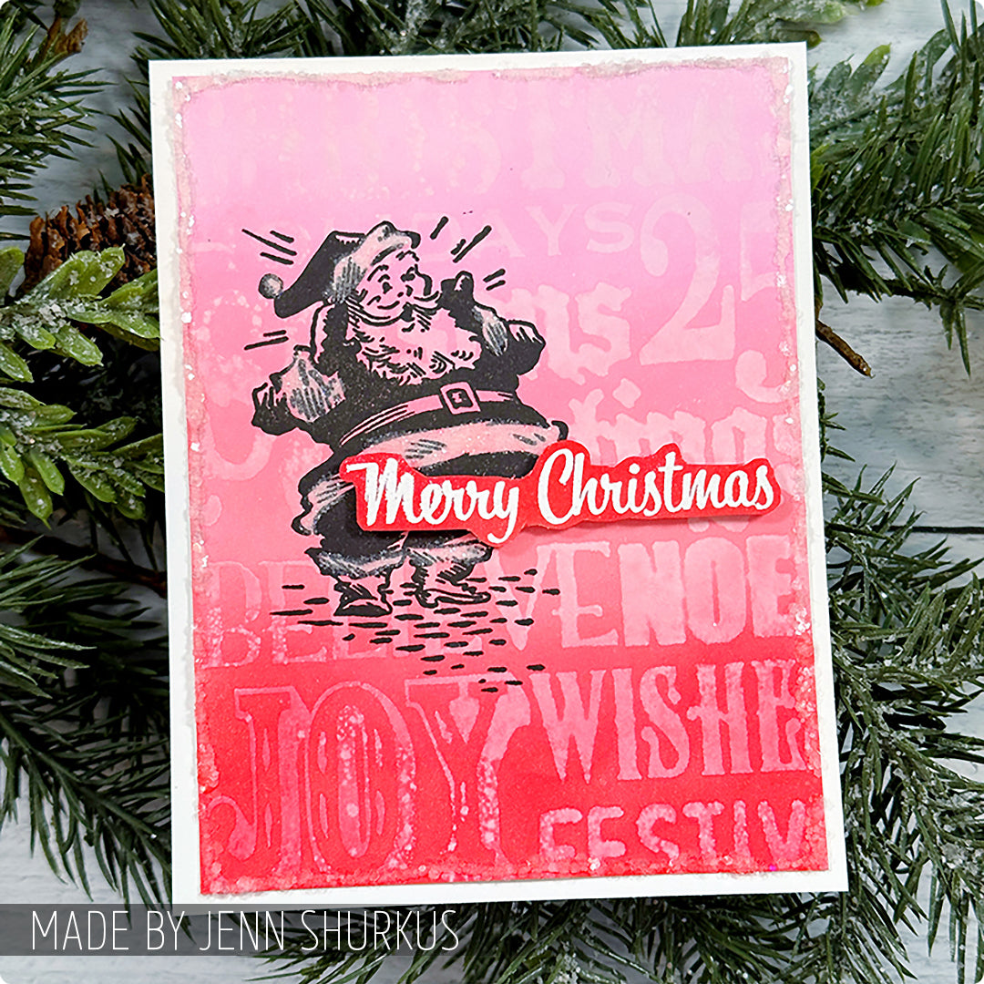 - Block text reads: Christmas Holidays Seasons Greetings 25 Believe Noel Joy Wishes Festive